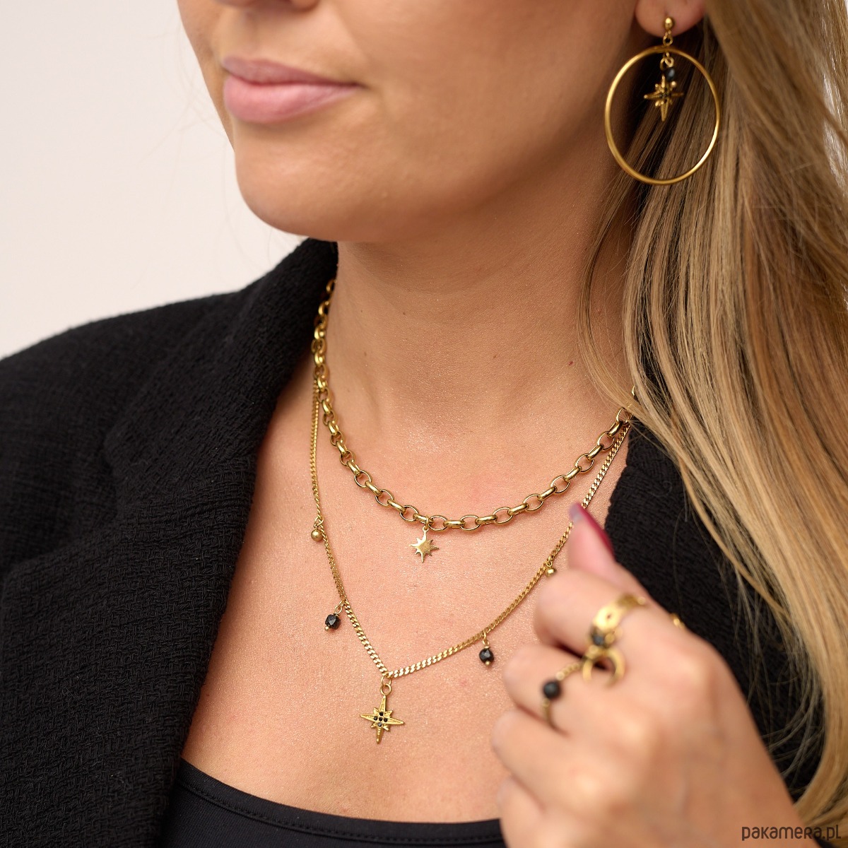 Kolczyki wykonane są z antyalergicznej stali szlachetnej pozłacanej, zawieszki również.