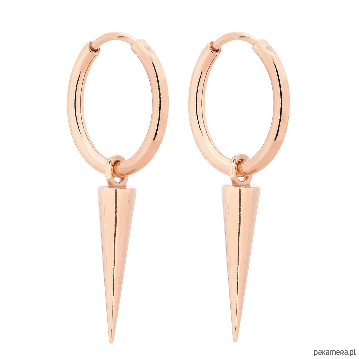 Złote kolczyki koła z kłami. Całość wykonana ze srebra 925 powlekanego 18 karatowym różowym złotem.