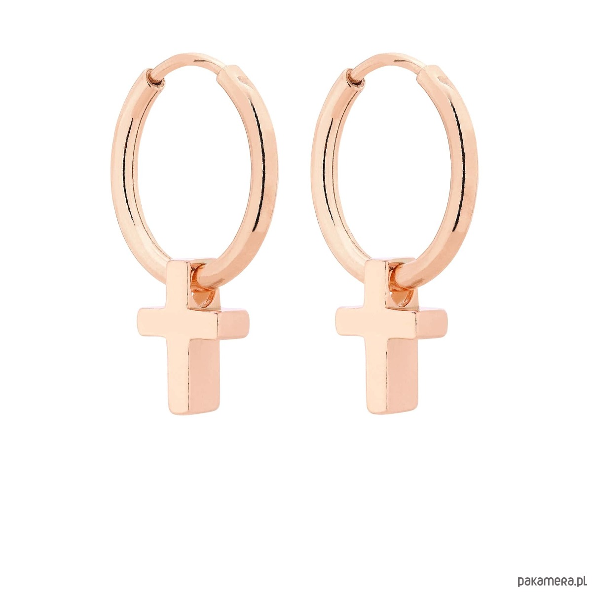 Kolczyki koła z różowego złota z krzyżykami