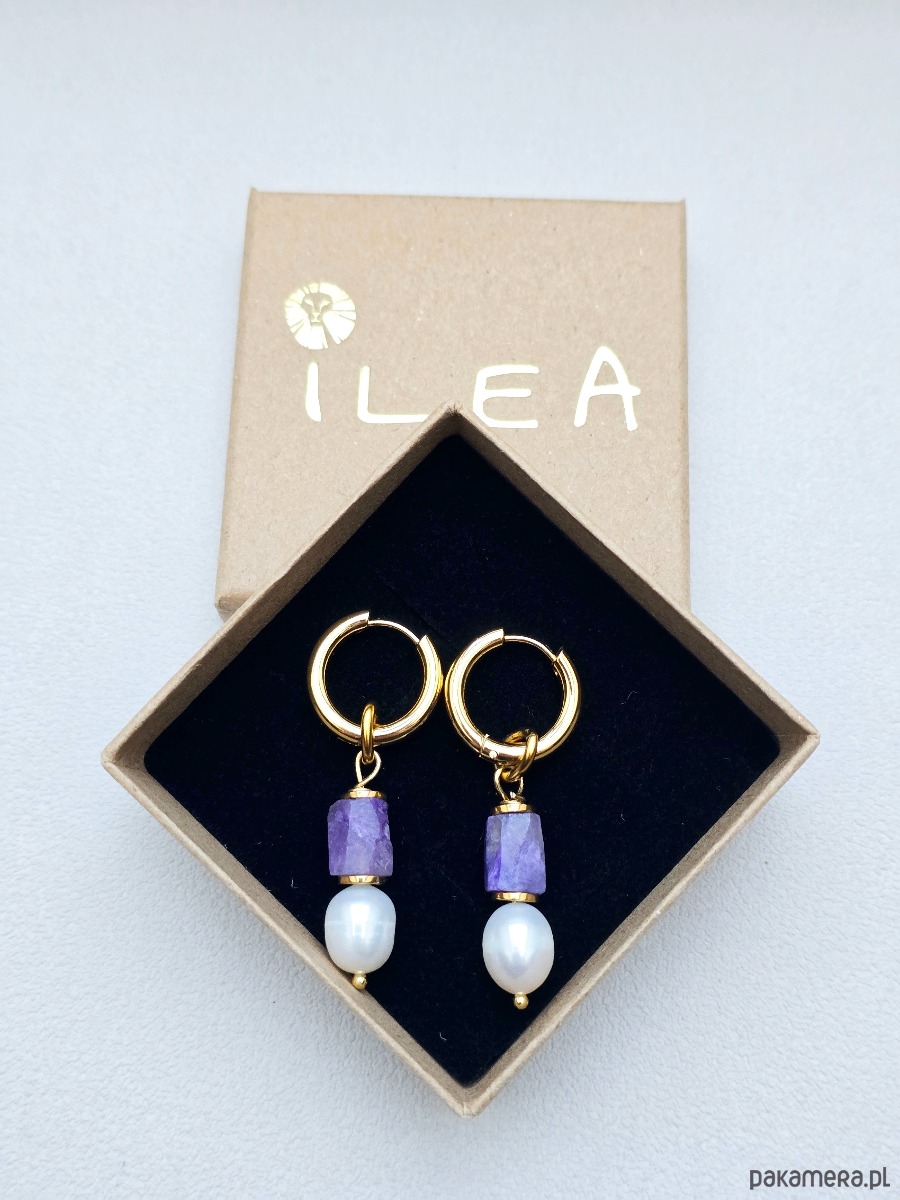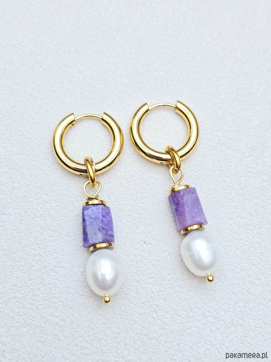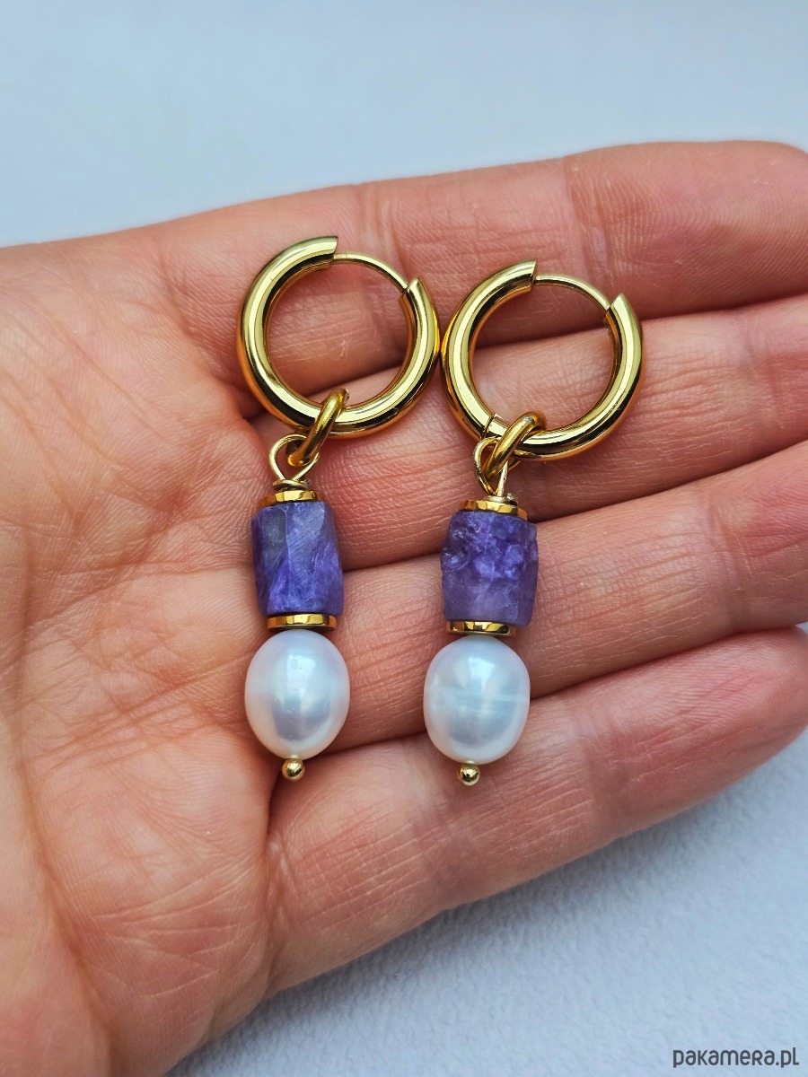 Wykorzystane kamienie: sugilit, perły naturalne, złocony hematyt