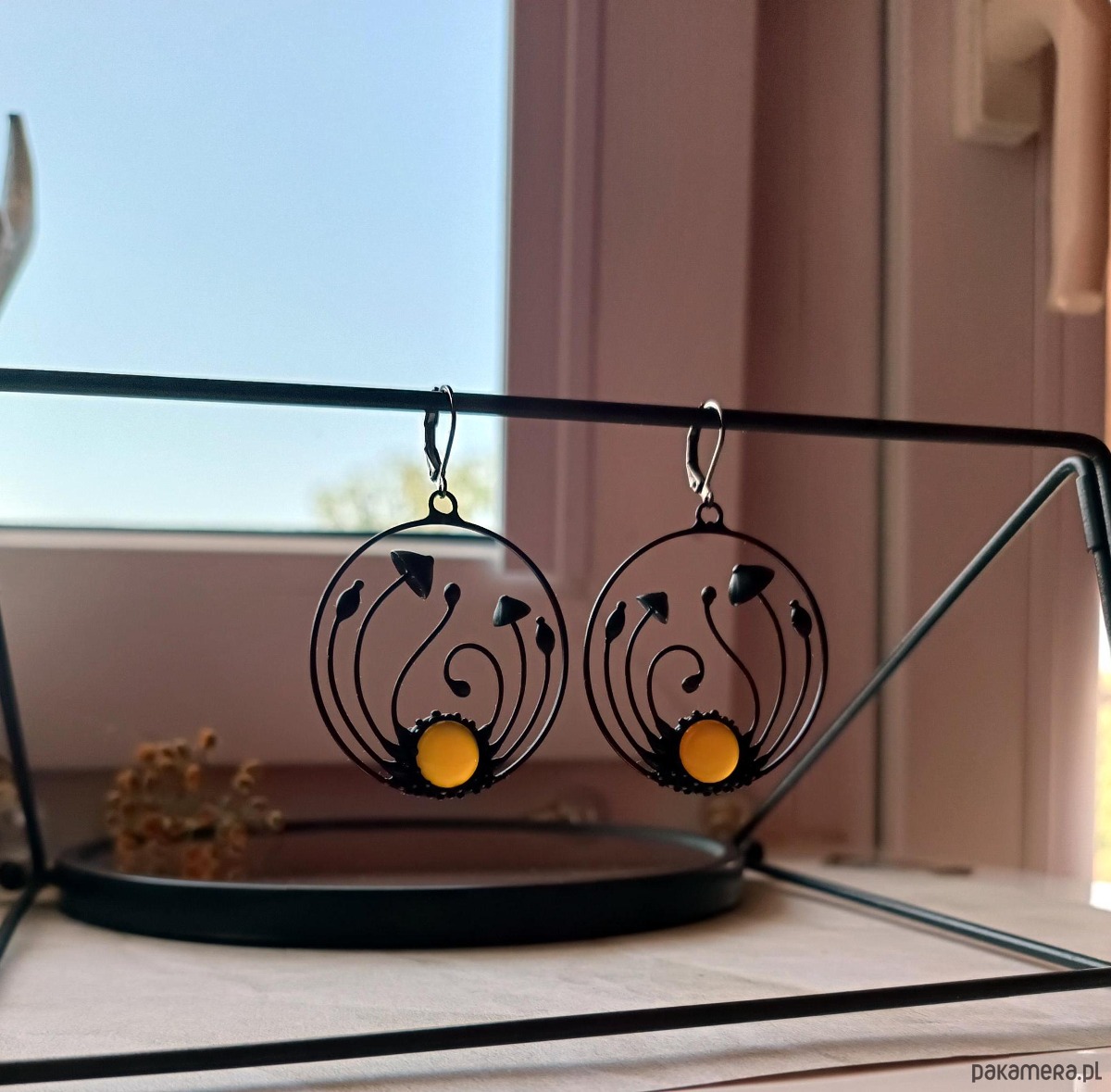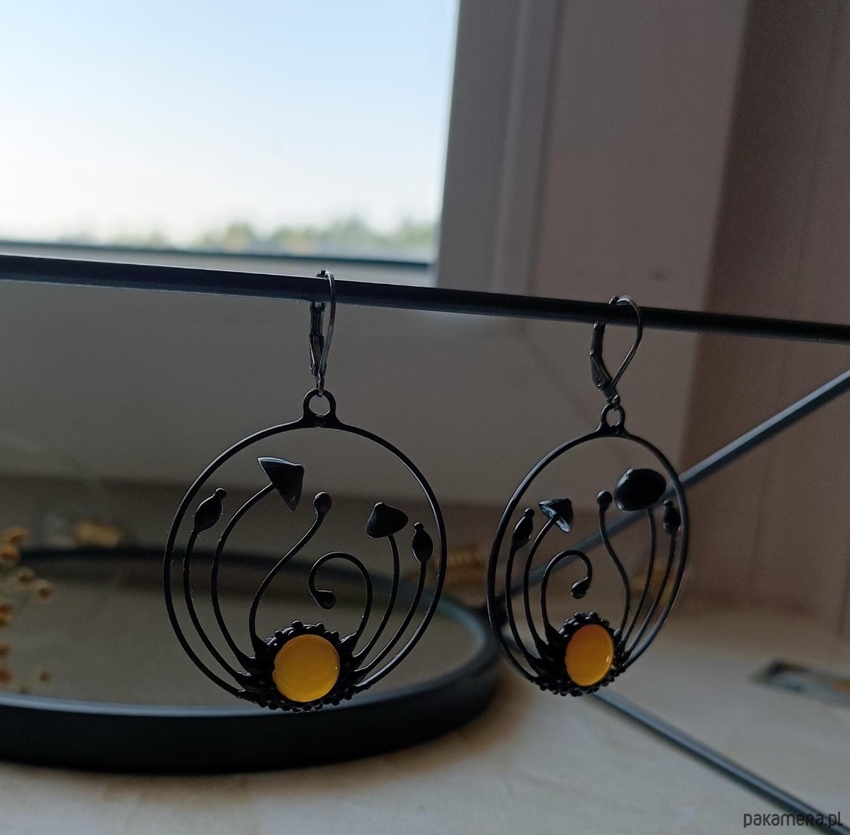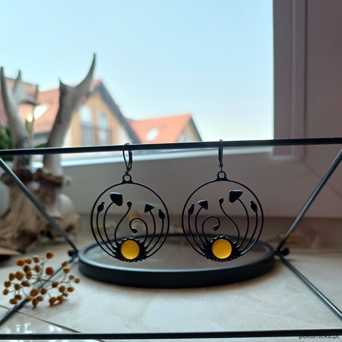 Kolczyki koła z żółtym agatem psychodeliczne grzyby w stylu boho