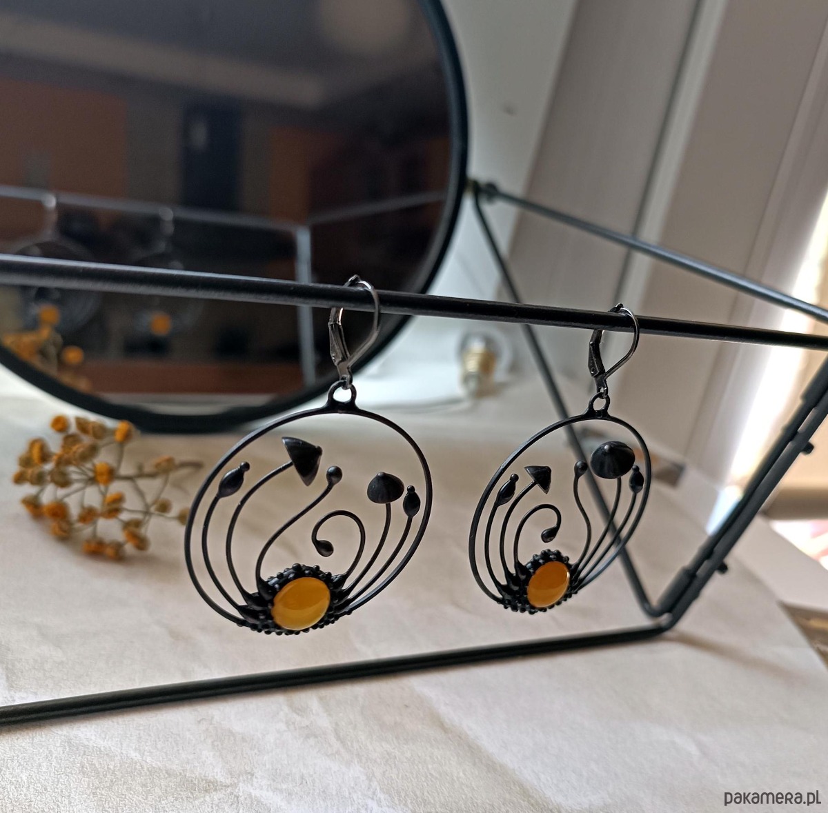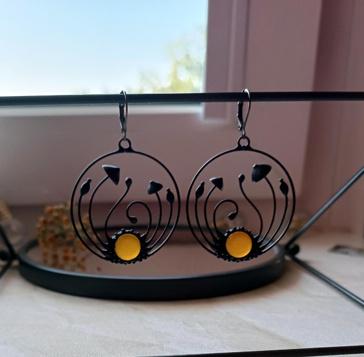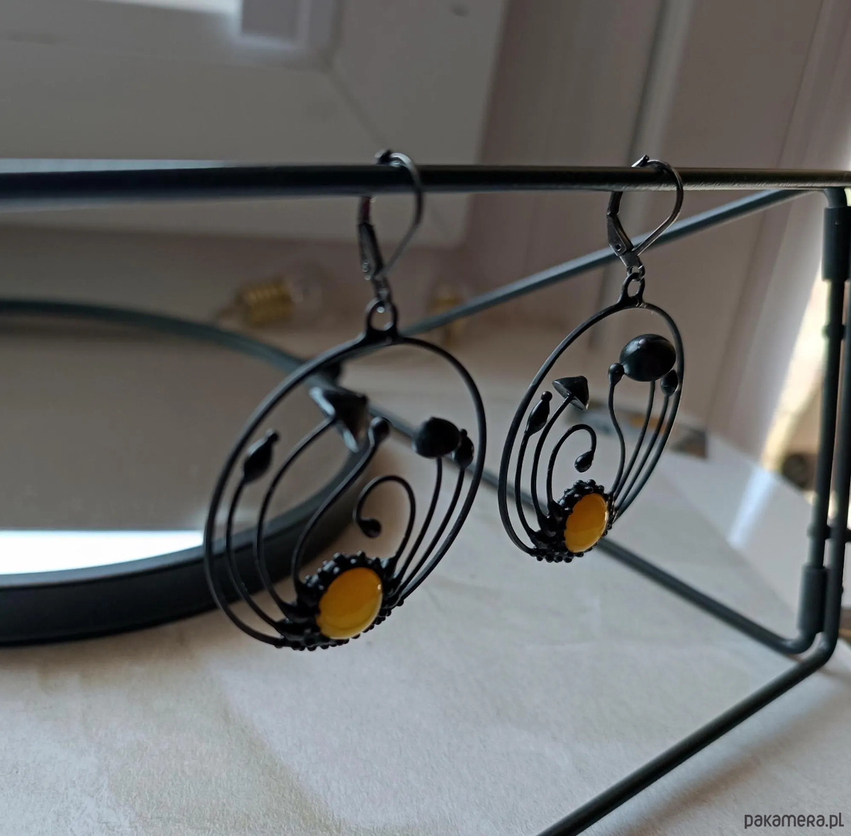 Kolczyki koła z żółtym agatem psychodeliczne grzyby w stylu boho