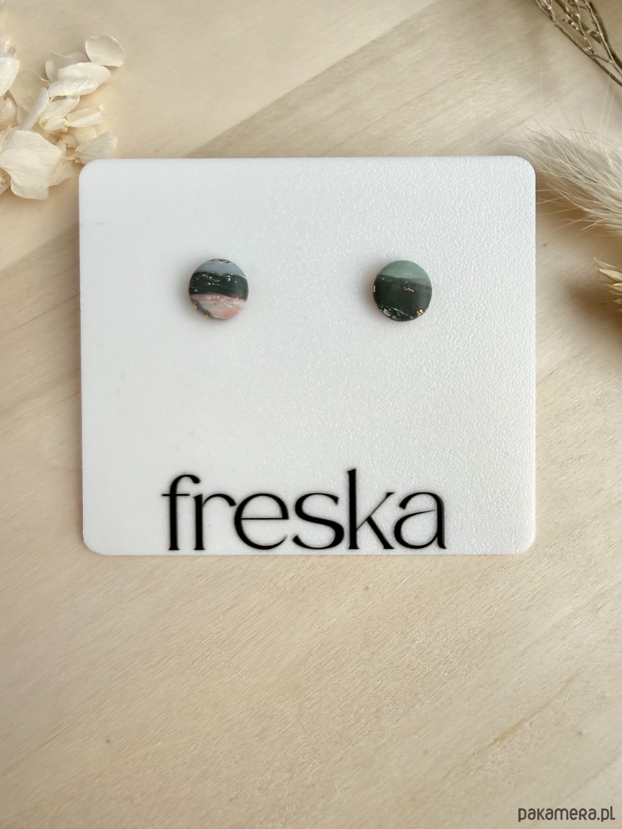 Kolczyki powstają w krótkich, limitowanych seriach, dlatego ułożenie kolorów i złotych akcentów może minimalnie różnić się między parami, co podkreśla ich unikatowy charakter. Sztyfty ze stali chirurgicznej są hipoalergiczne i odporne na codzienne użytkowanie, dzięki czemu kolczyki świetnie sprawdzą się także u osób z wrażliwą skórą.