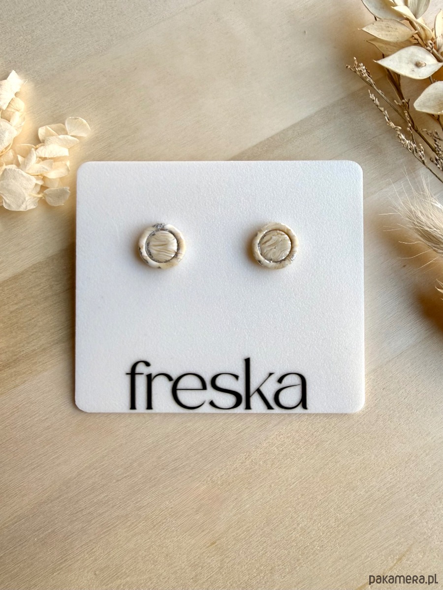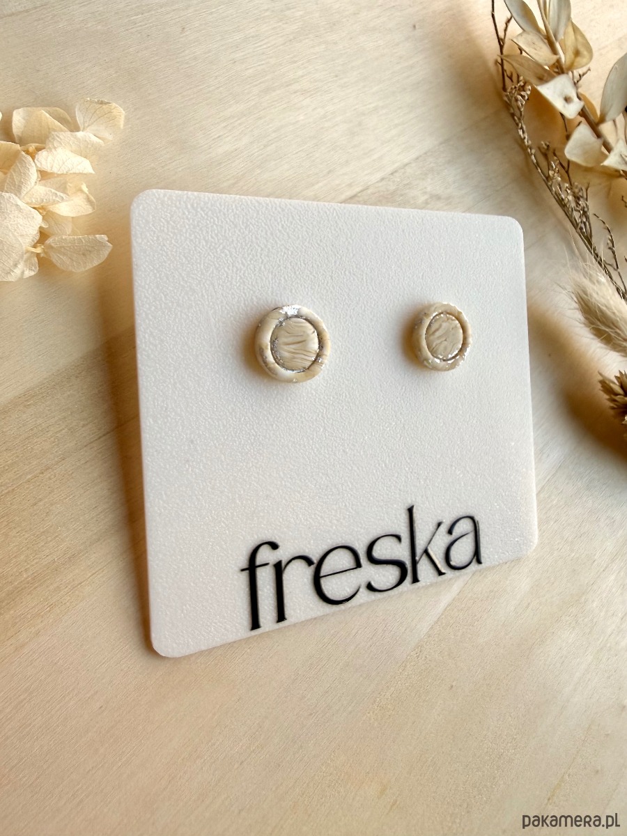 Postaw na subtelną elegancję z minimalistycznymi kolczykami–kółkami w piaskowym odcieniu ze srebrną ramką! Ręcznie wykonane z gliny polimerowej o delikatnie fakturowanej powierzchni, wykończone chłodną, metaliczną obwódką, zostały osadzone na bazie ze stali chirurgicznej – odpowiedniej również dla osób z wrażliwą skórą.