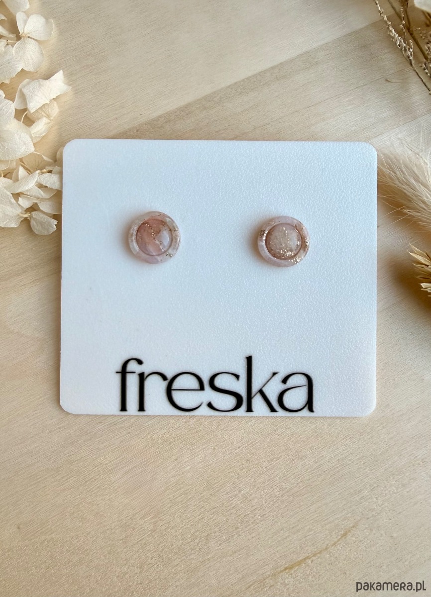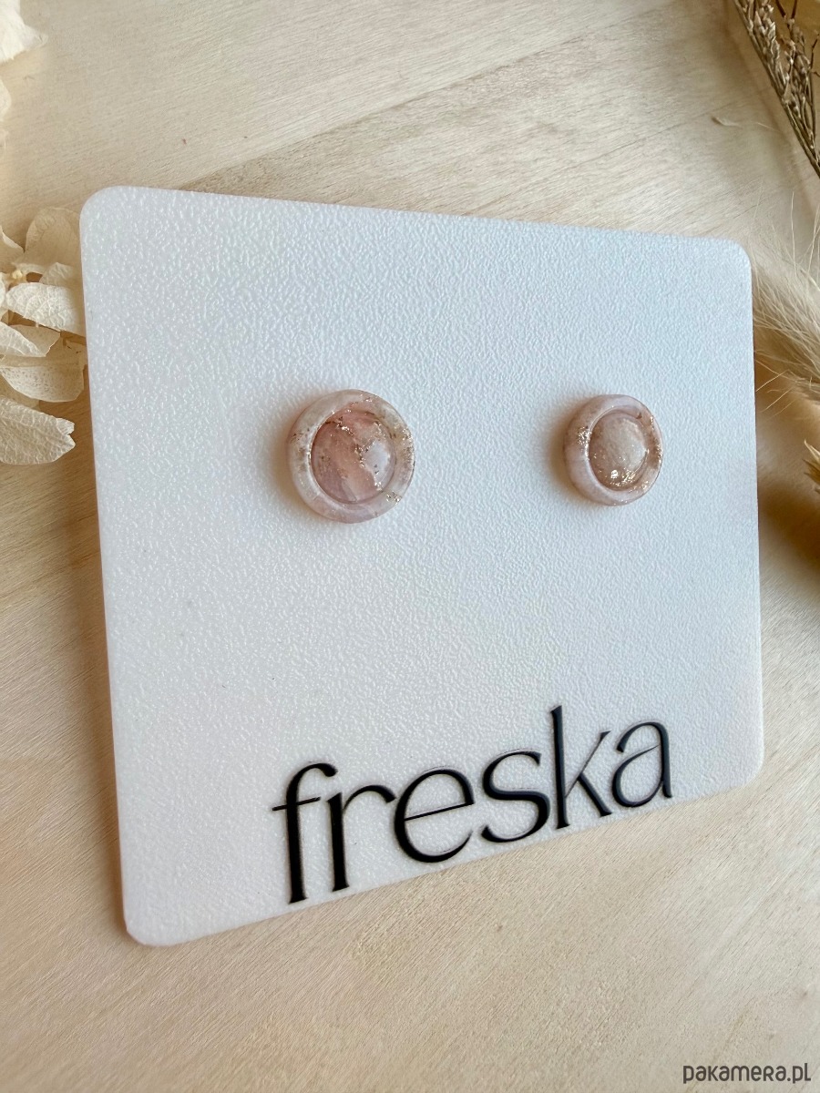 Kolczyki powstają w krótkich, autorskich seriach, dlatego rozmieszczenie drobinek w środku może minimalnie różnić się między parami, co podkreśla ich unikatowy charakter. Sztyfty ze stali chirurgicznej są hipoalergiczne i odporne na codzienne użytkowanie, dzięki czemu kolczyki świetnie sprawdzą się także u osób z wrażliwą skórą.