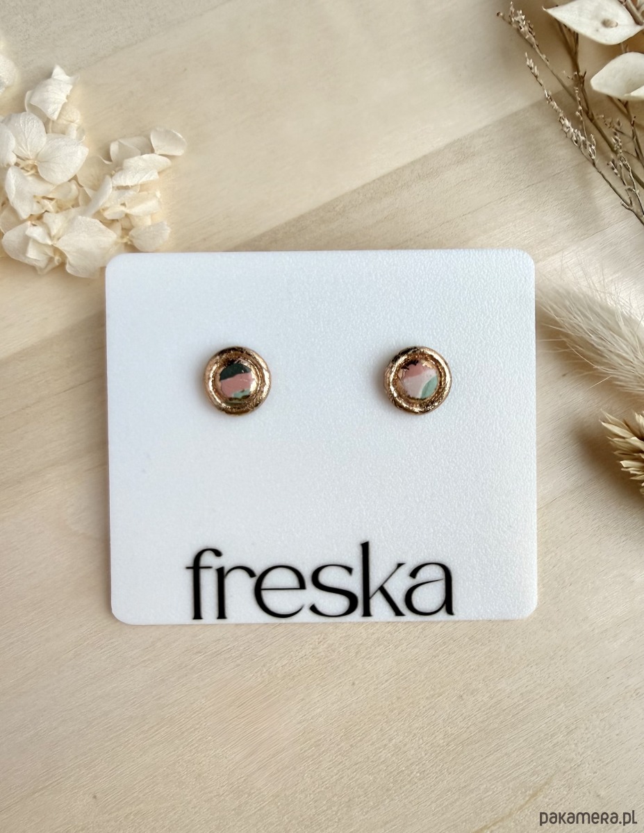 Kolczyki powstają w krótkich seriach, dlatego rozmieszczenie kolorów wewnątrz „medalionu” może minimalnie różnić się między parami, co podkreśla ich unikatowy charakter. Sztyfty ze stali chirurgicznej są hipoalergiczne i odporne na codzienne użytkowanie, dzięki czemu kolczyki sprawdzą się także u osób z wrażliwą skórą.
