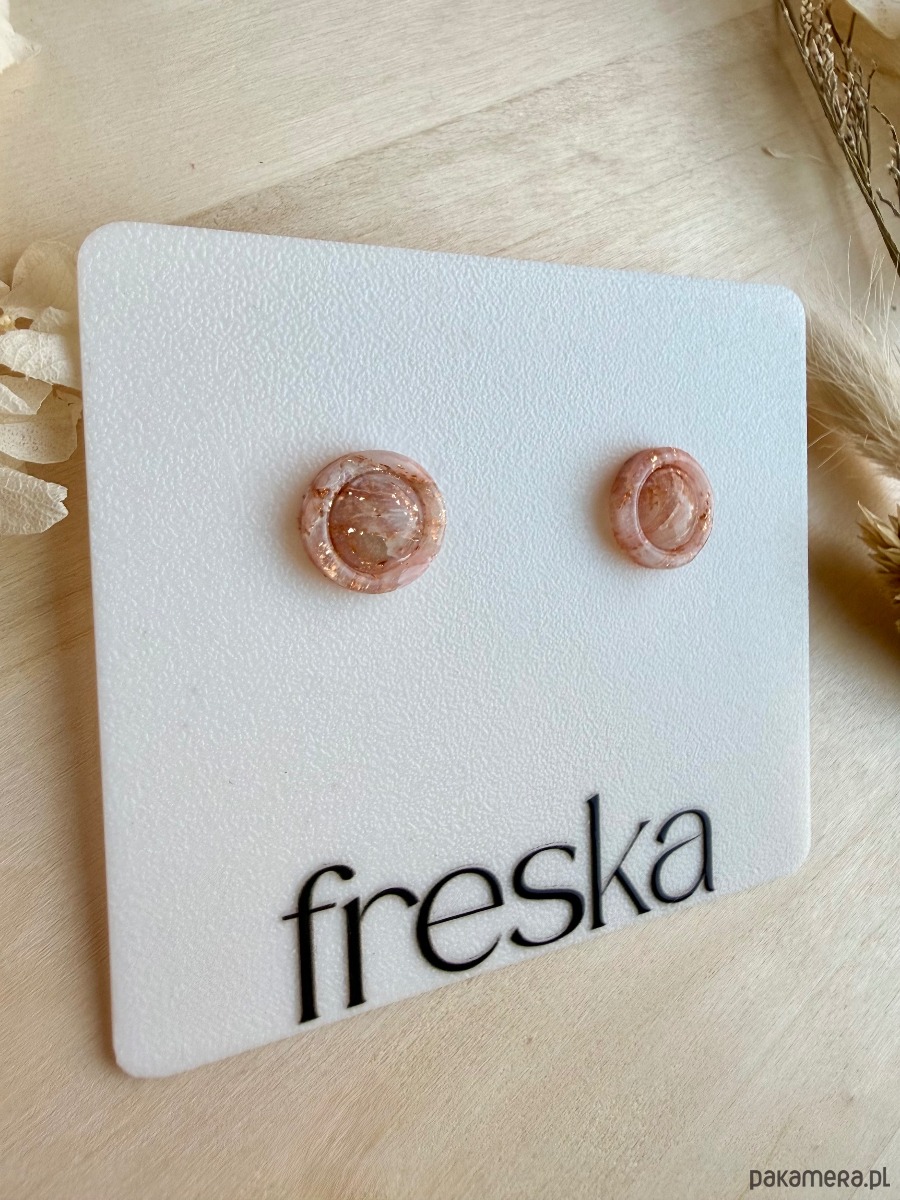 Kolczyki powstają w krótkich, autorskich seriach, dlatego rozmieszczenie drobinek w środku może minimalnie różnić się między parami, co podkreśla ich unikatowy charakter. Sztyfty ze stali chirurgicznej są hipoalergiczne i odporne na codzienne użytkowanie, dzięki czemu kolczyki świetnie sprawdzą się także u osób z wrażliwą skórą.