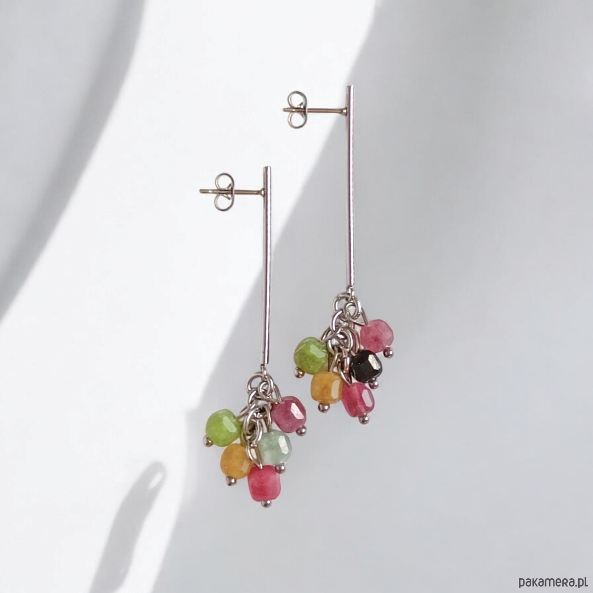 Kolczyki kolorowe gronka : kwarc multicolor i stal szlachetna