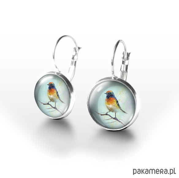 Średnica miniaturki grafiki 14 mm, długość kolczyków ok. 2,5 cm.