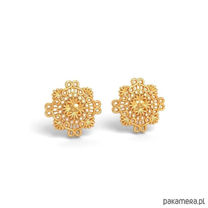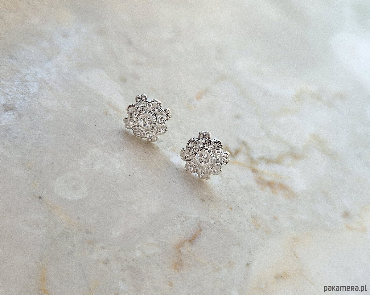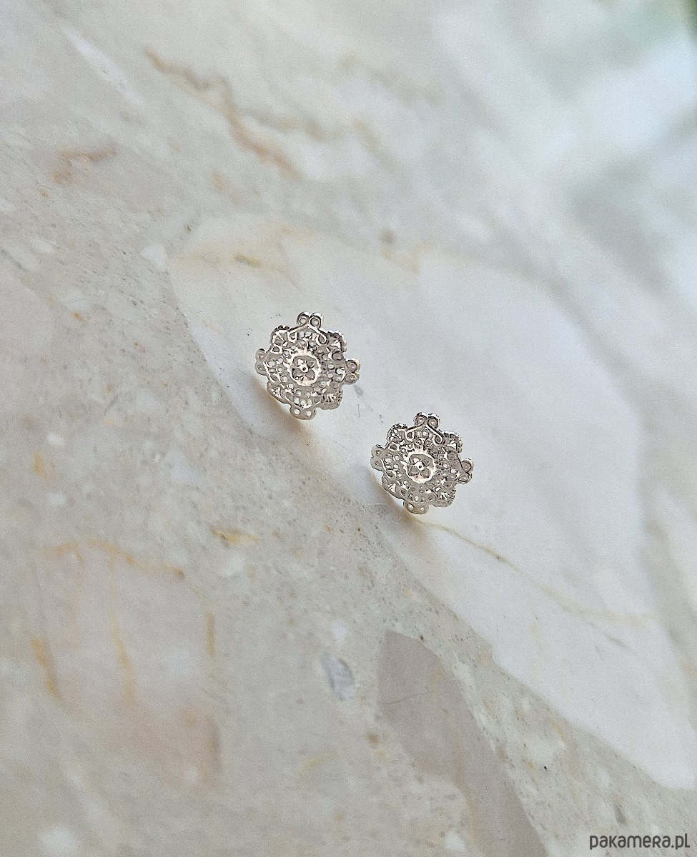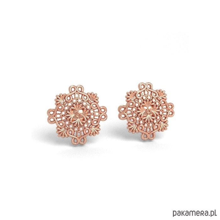 Kolczyki zapinane na sztyfty, wykonane ze srebra próby 925, srebra pokrytego 24kt złotem lub 18kt różowym złotem.