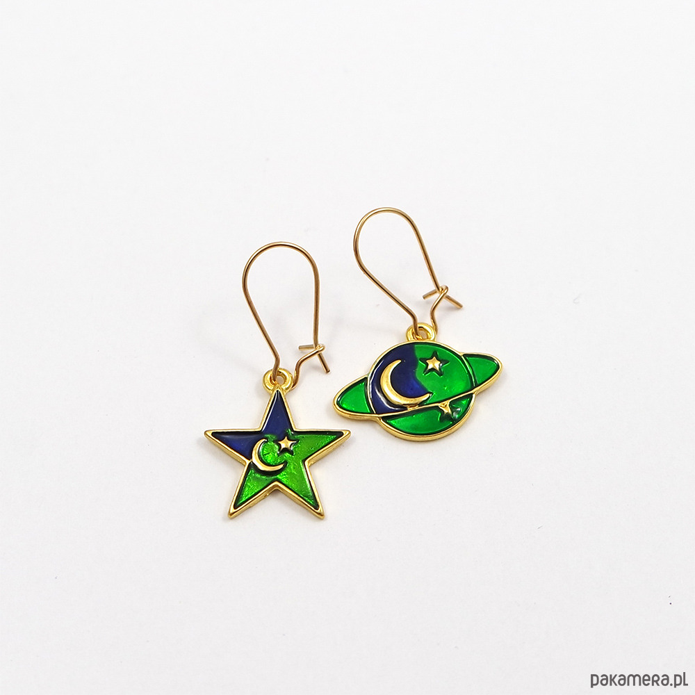 Kolczyki z pięknymi zawieszkami emaliowanymi.