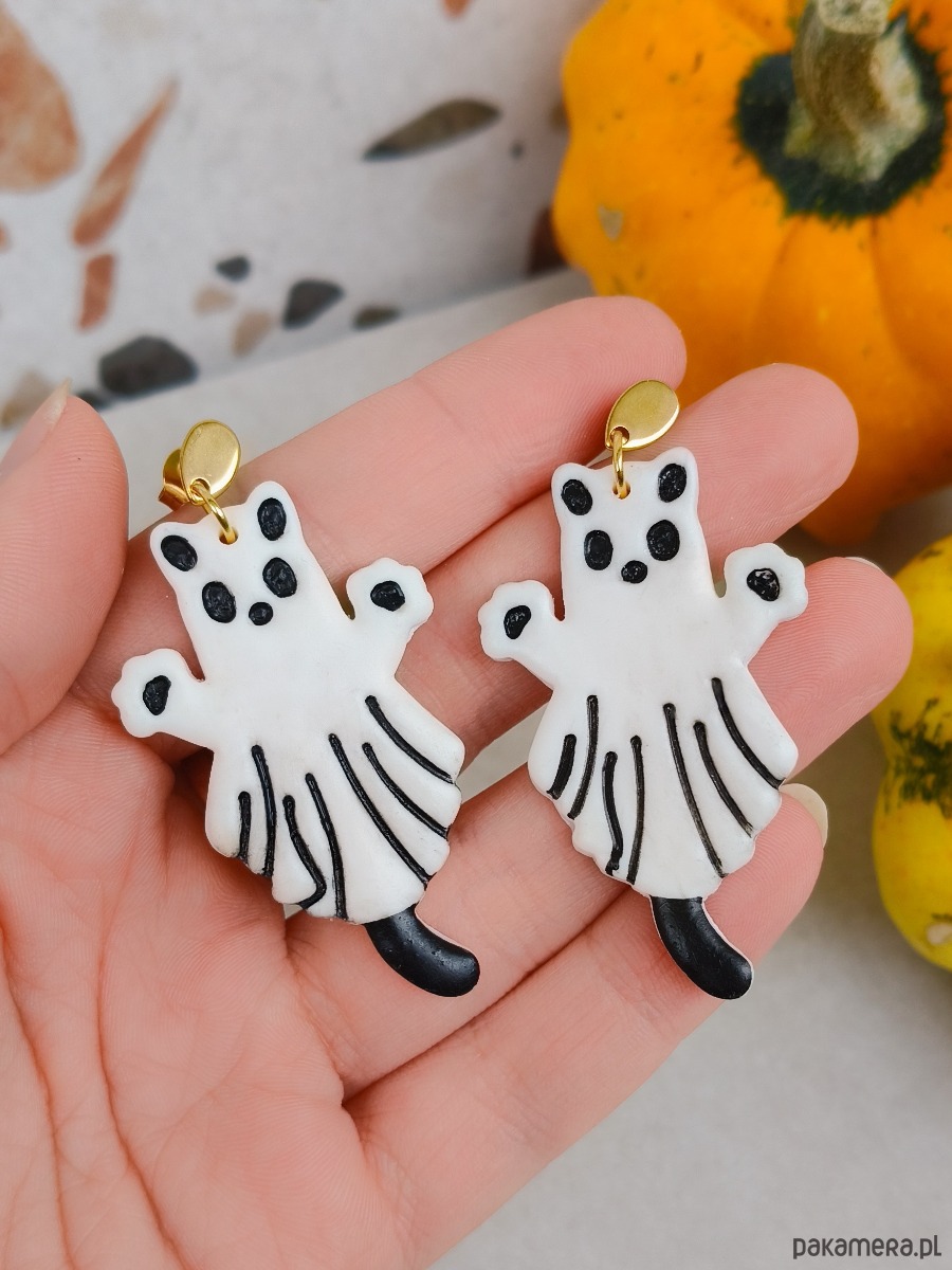 Kolczyki kotki duchy, lekkie kolczyki idealne na halloween, mały prezent