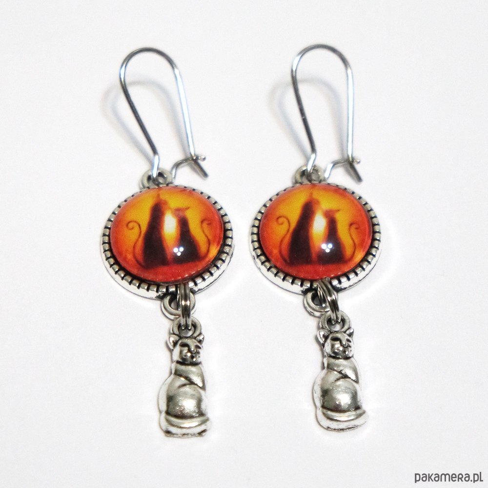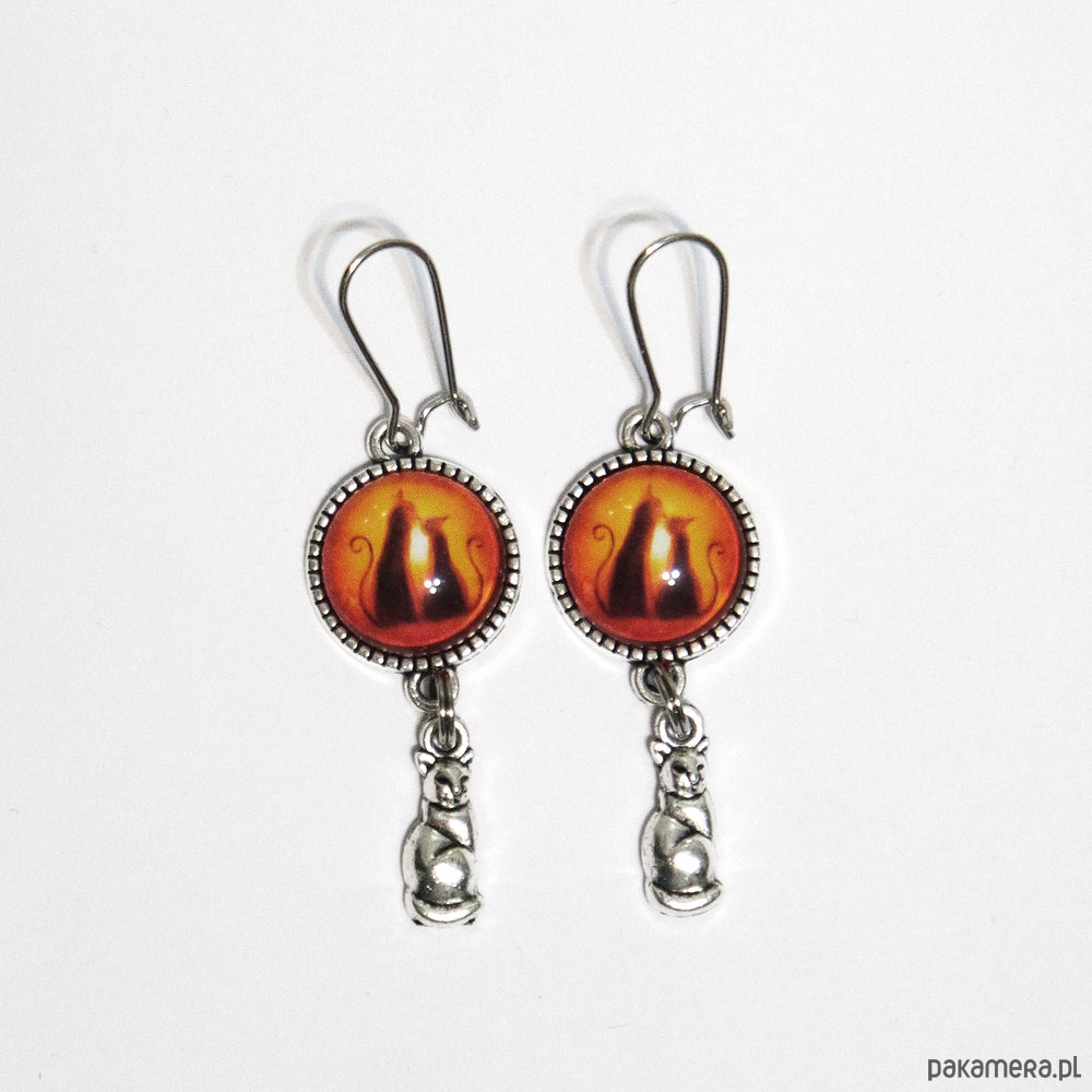 Niezwykłe kolczyki z naszą autorską grafiką oraz zawieszką z kotkiem.