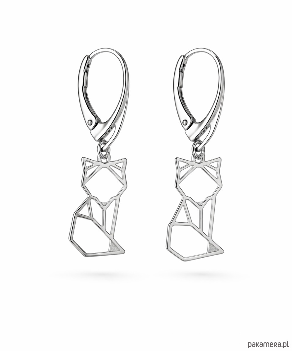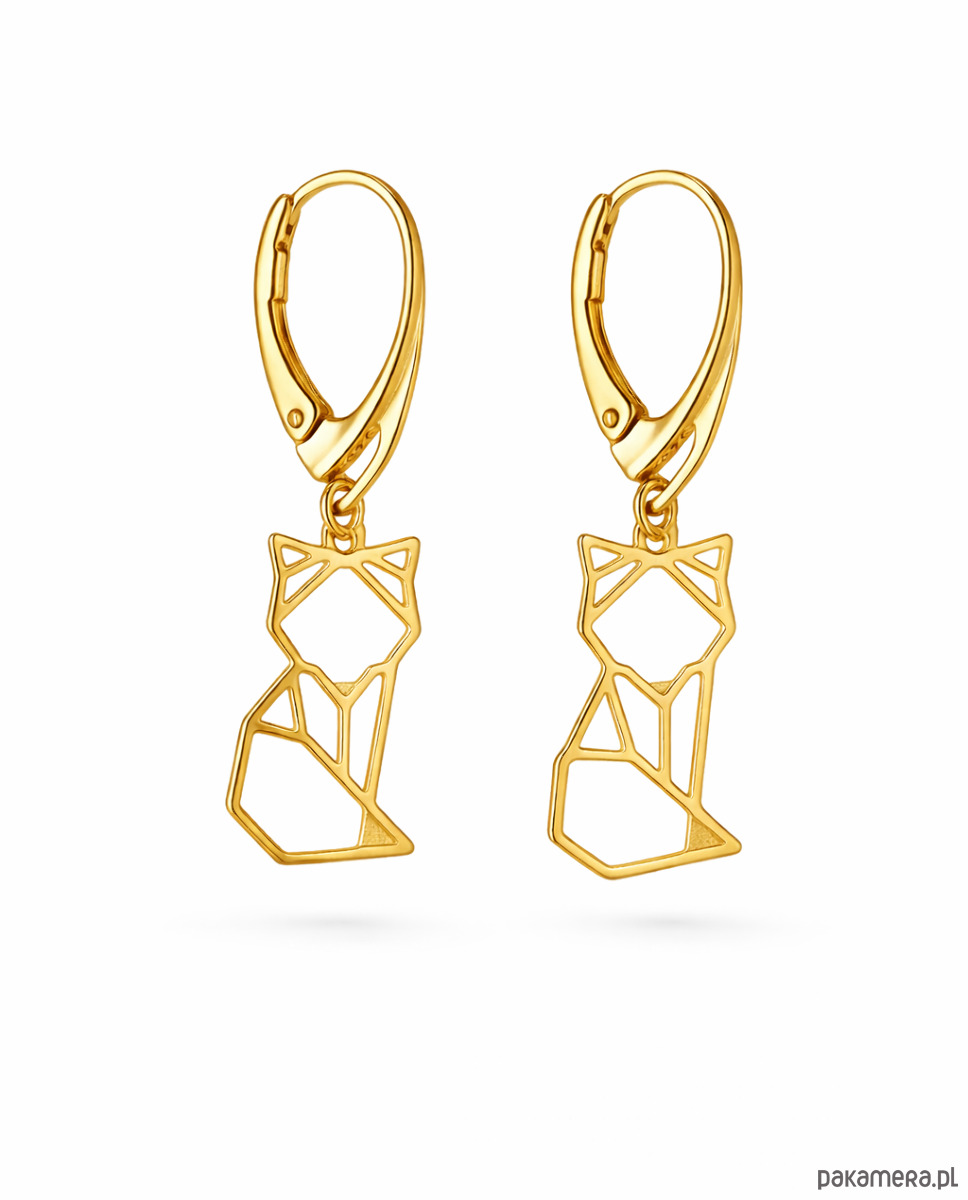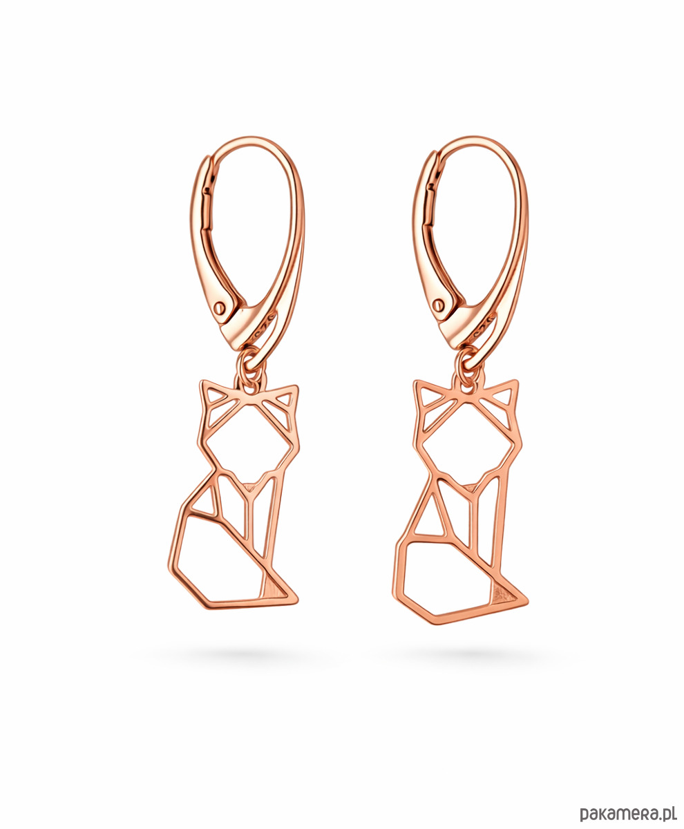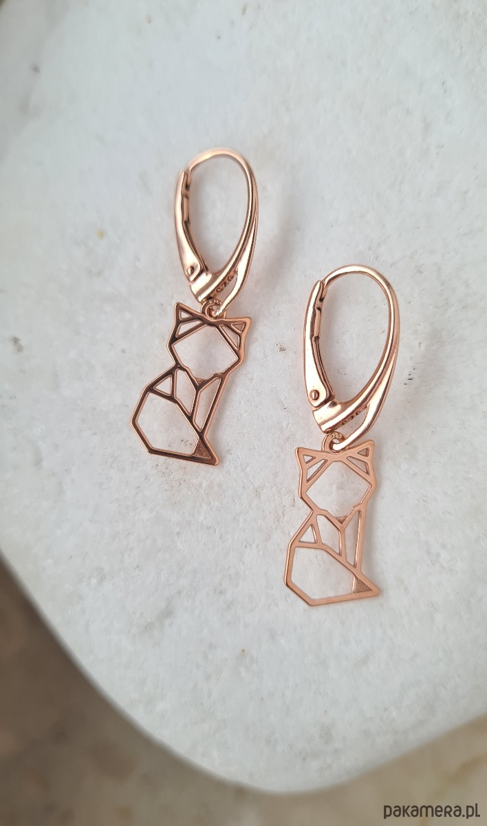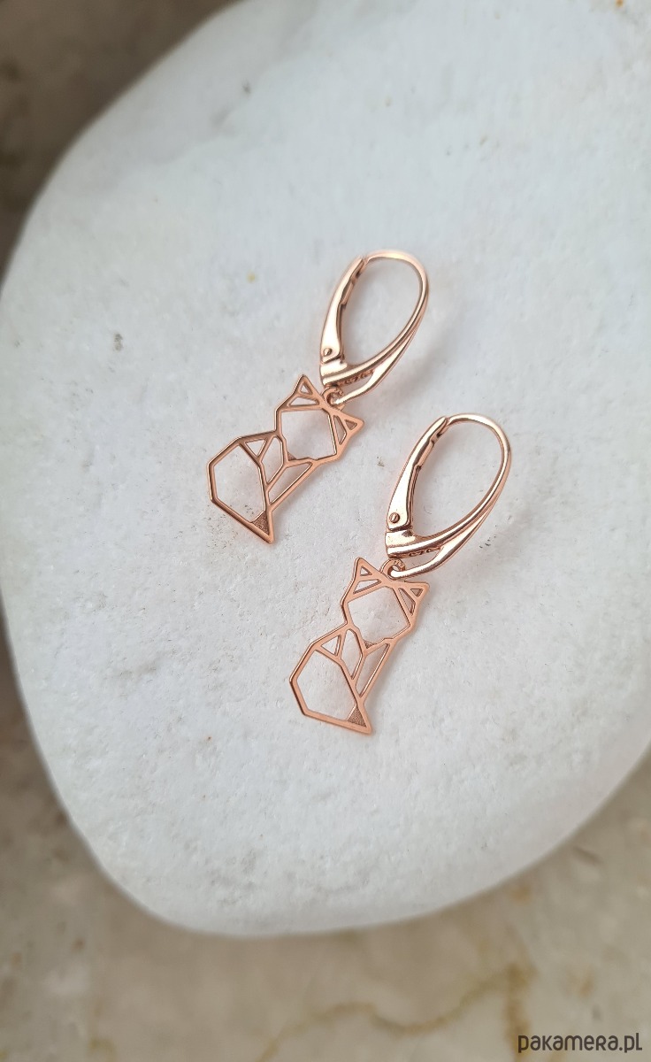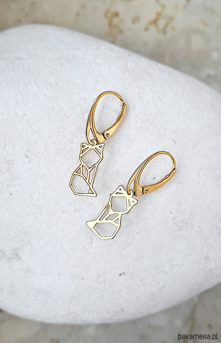Kolczyki zapinane na bigiel angielski, w kształcie geometrycznych lisków/ kotków.