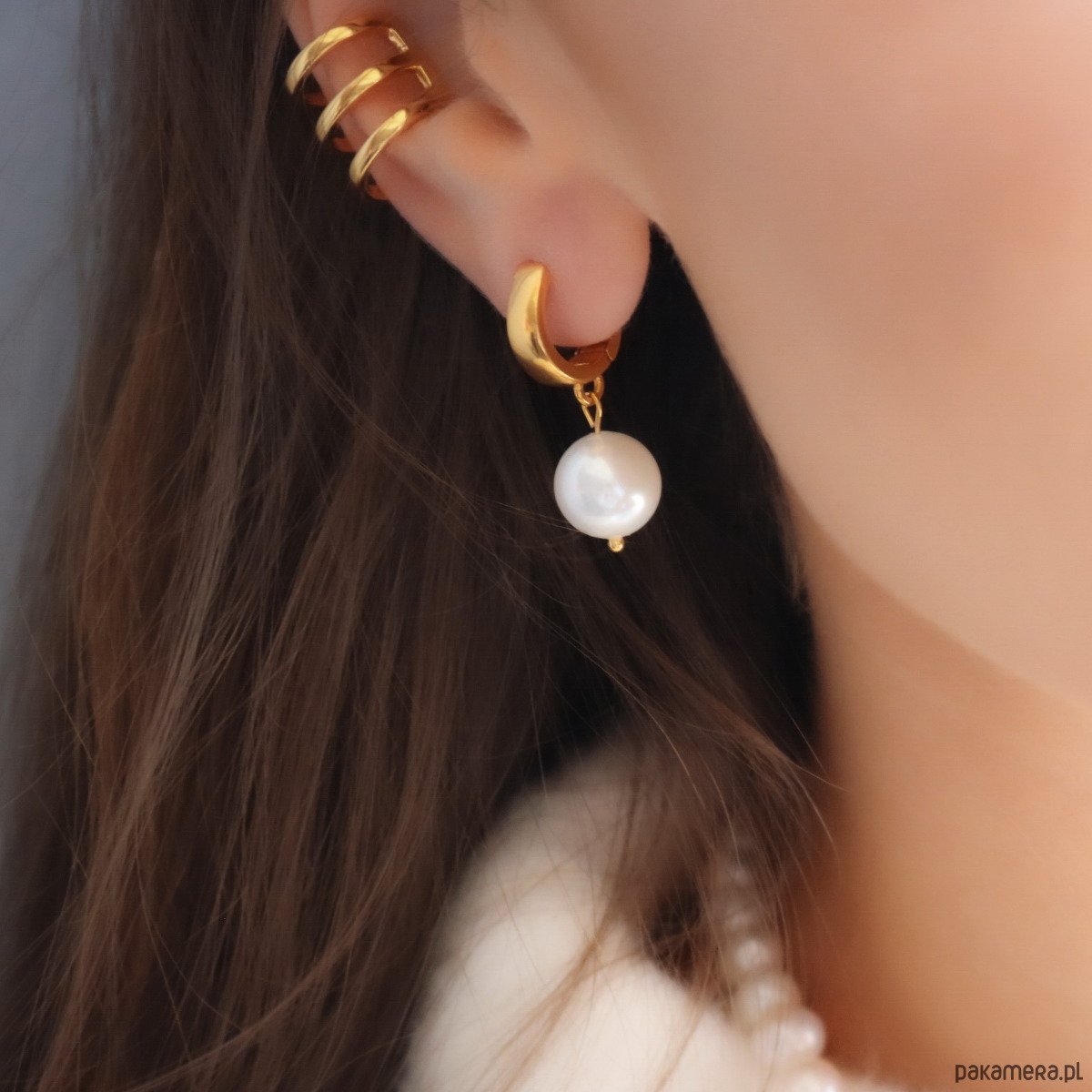 Kolczyki kreolki z perłami srebro 925 pozłacane