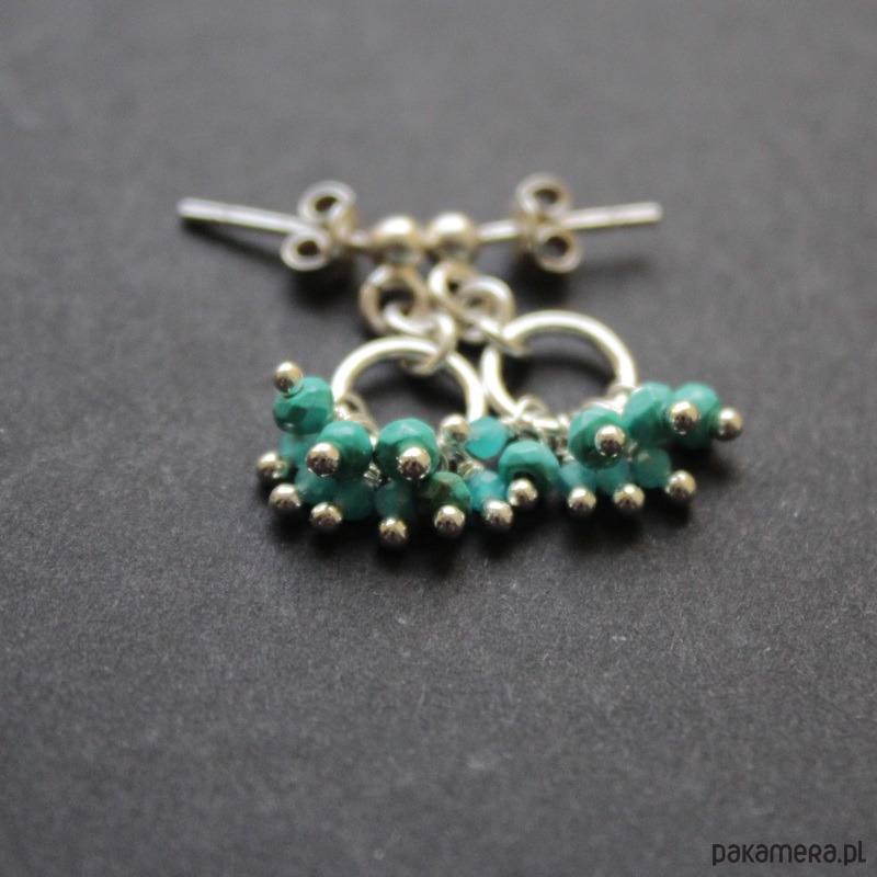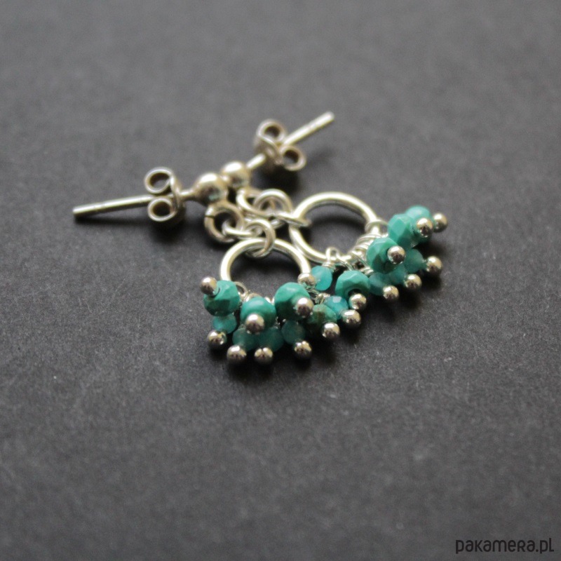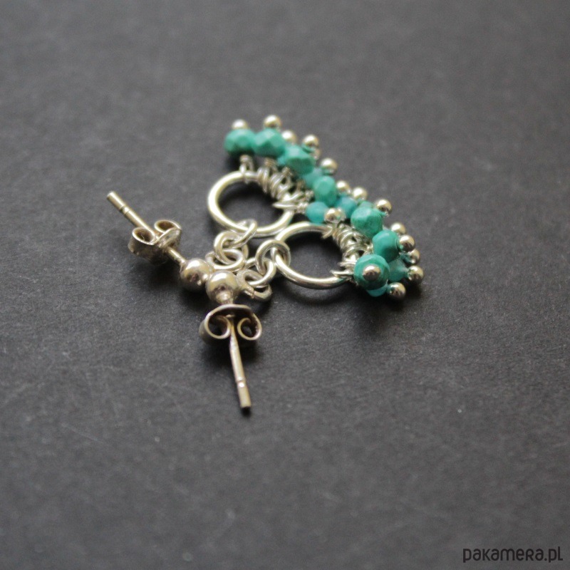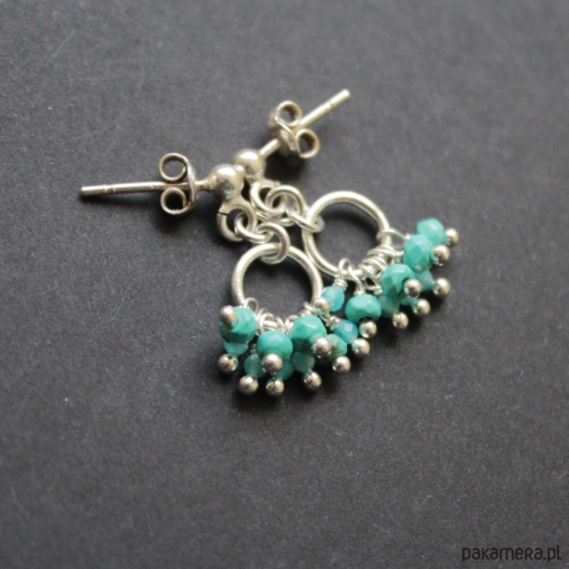 Przepiękne minimalistyczne kolczyki wykonane zostały ze srebra próby 925 oraz mikro fasetowanych turkusów (0,4 cm) oraz amazonitów (0,3 cm).