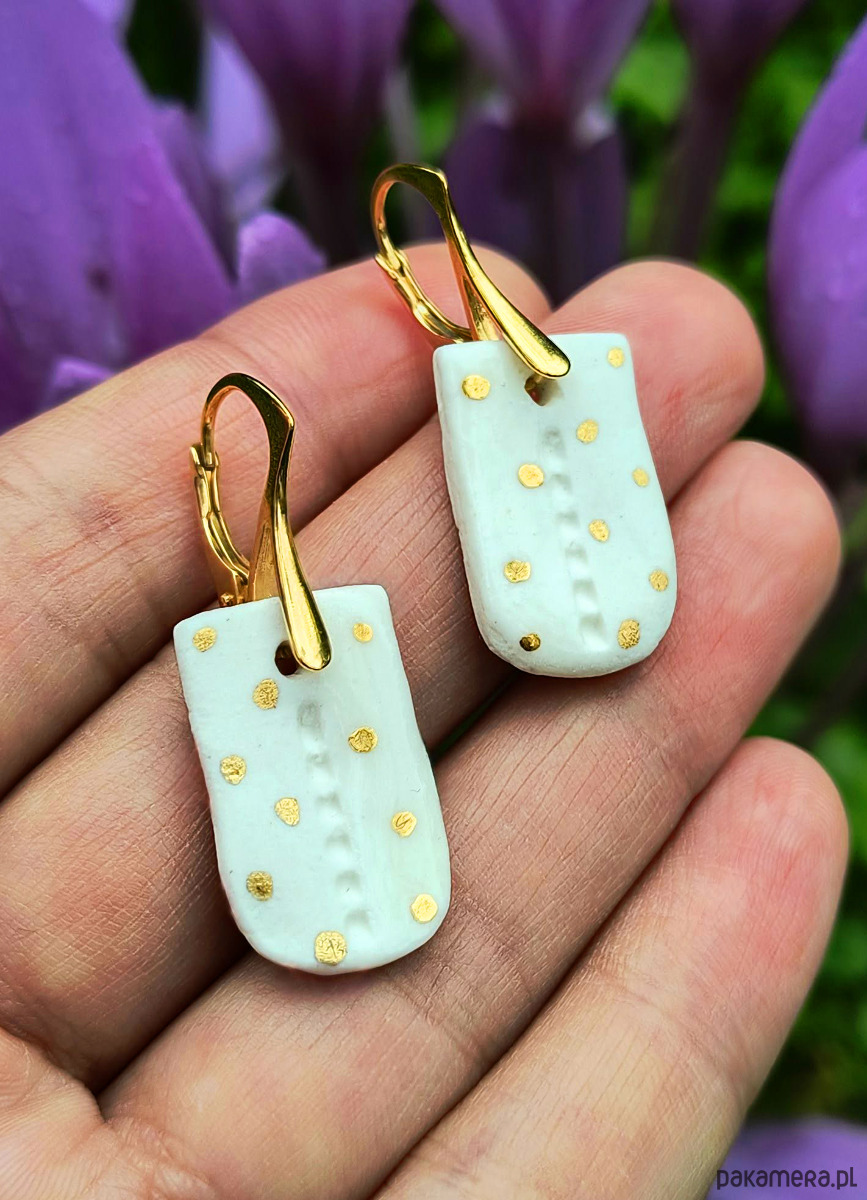 Kolczyki wykonałam własnoręcznie ze szlachetnej porcelany i zdobiłam 24-karatowym złotem.