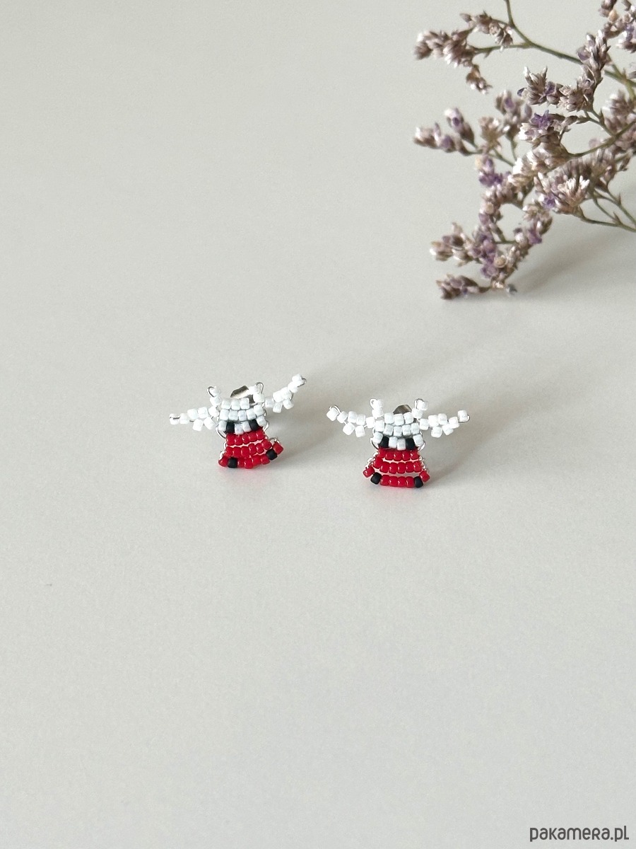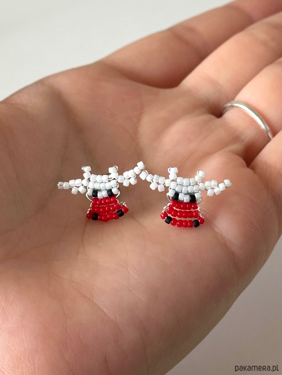 Urocze kolczyki sztyfty - krówki. Ręcznie wykonane z koralików. Sztyfty i baranki ze stali szlachetnej w kolorze złotym.