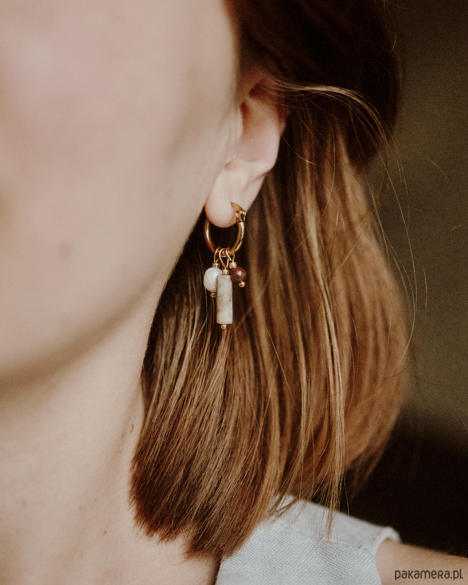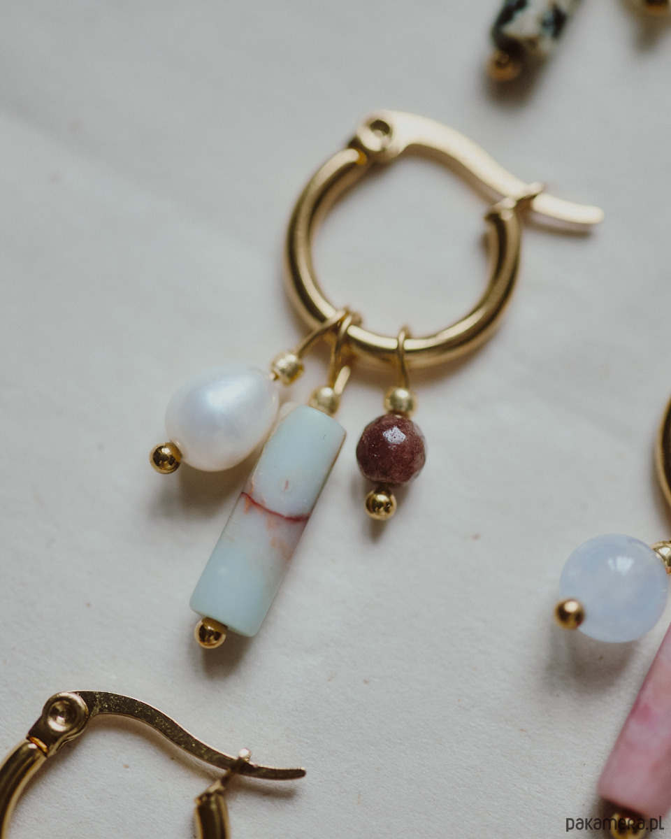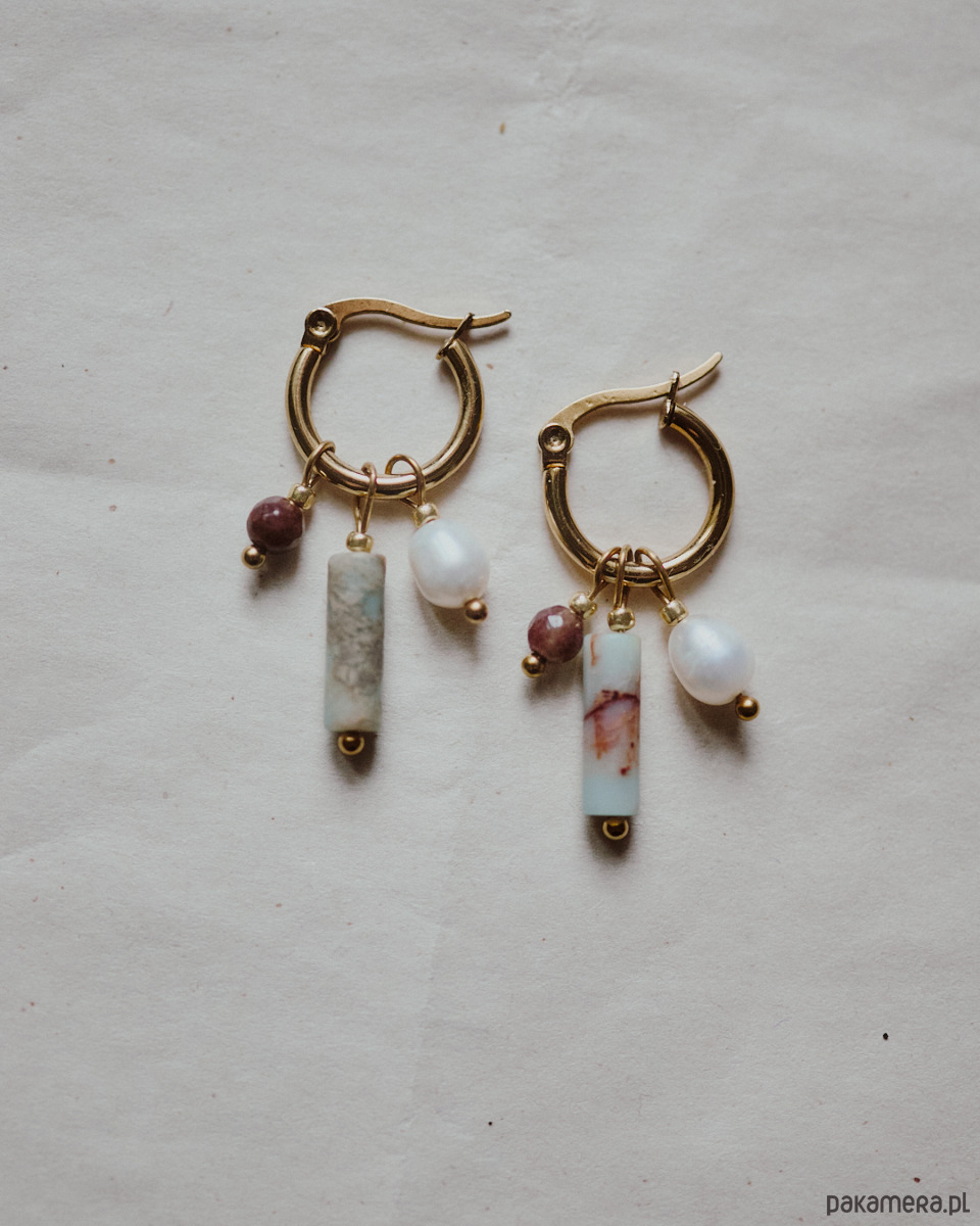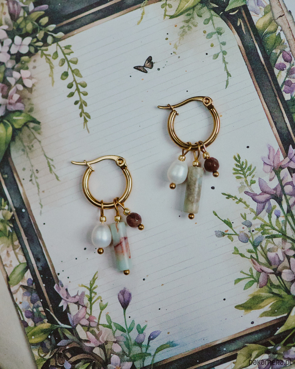 Zobacz, te kolczyki to morska bryza doprawiona brązem. Piękna gra kolorów i kształtów naturalnej perły, jadeitu oraz jaspisu cesarskiego.