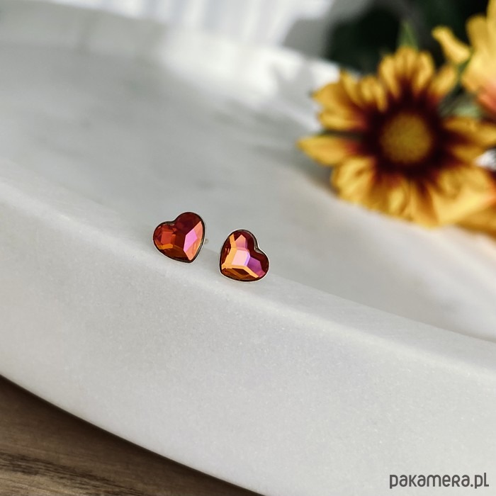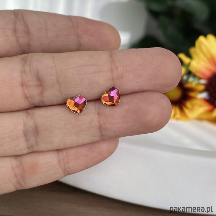 Kolczyki - kryształy Swarovski -Serduszka z pomarańczy