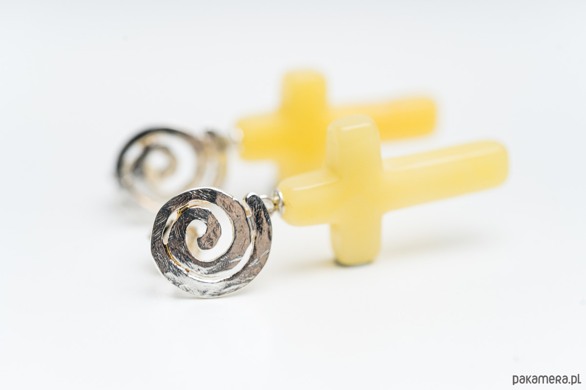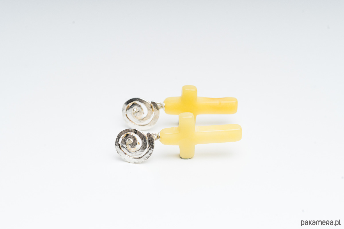 Kolczyki krzyżyki z bursztynu bałtyckiego i srebra próby 925