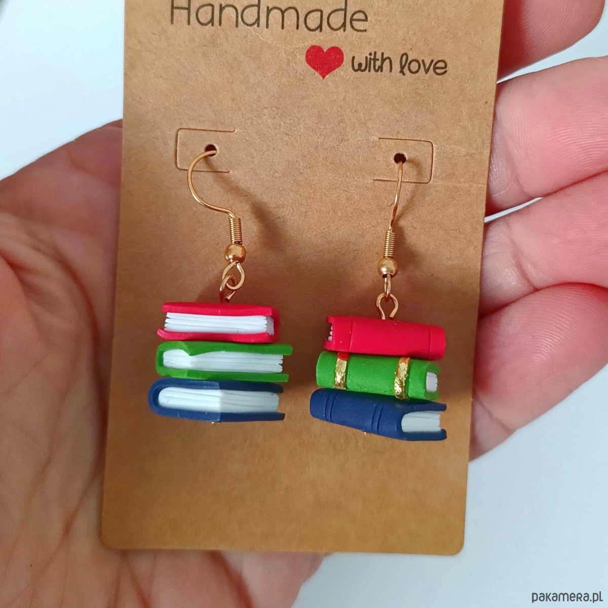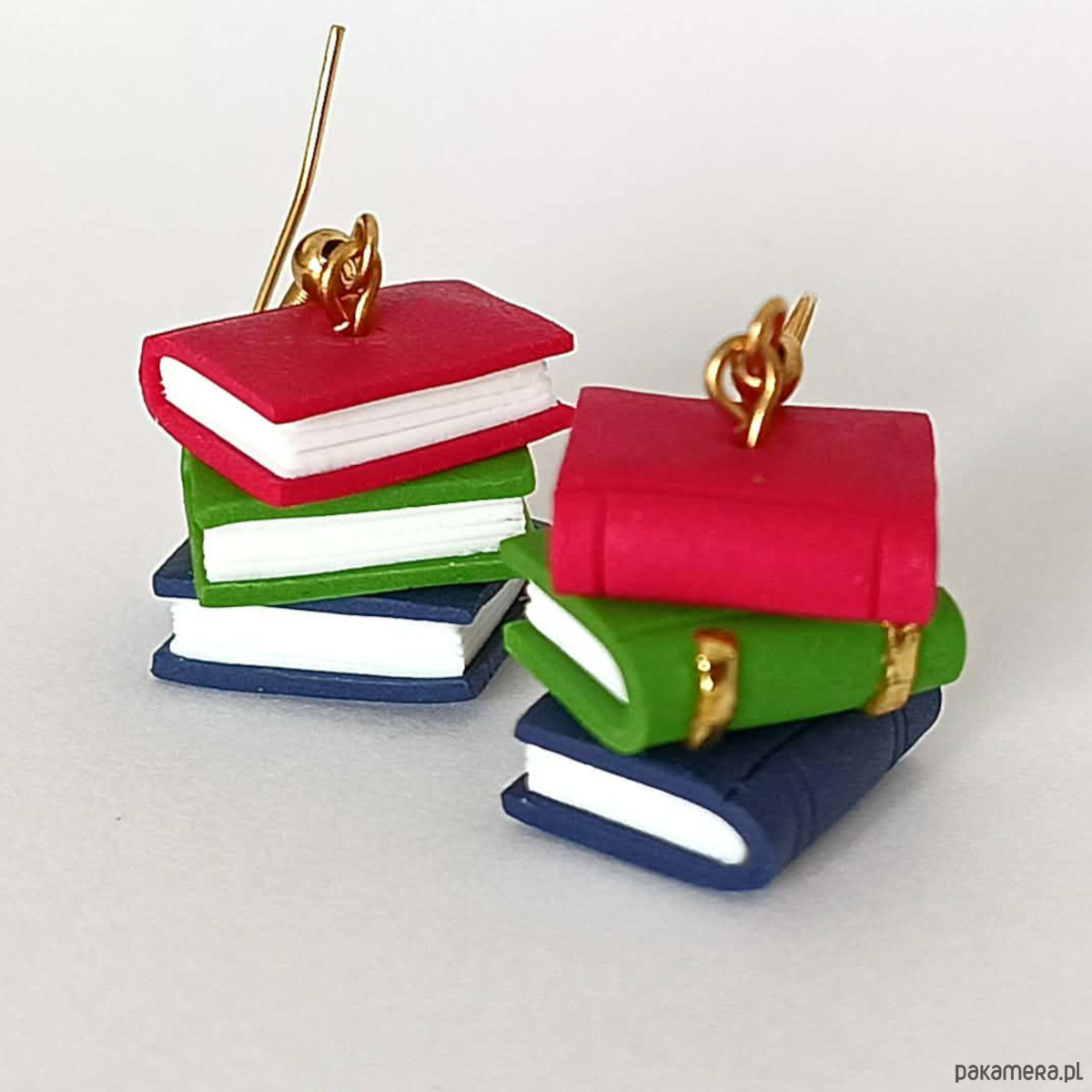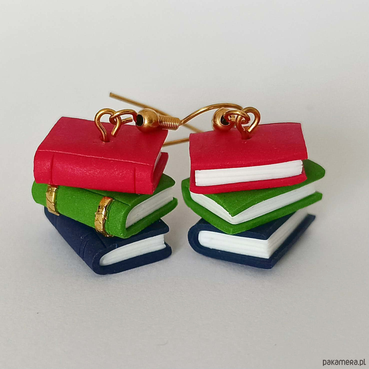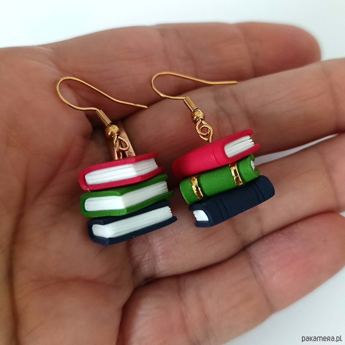 Urocze, ręcznie wykonane kolczyki inspirowane miłością do książek i klimatem starych bibliotek. Miniaturowe kolorowe książeczki tworzą mały stos, który przyciąga uwagę i dodaje charakteru każdej stylizacji