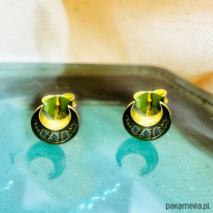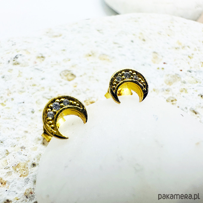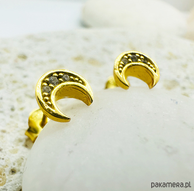 Piękne srebrne kolczyki z wyjątkowymi małymi księżycami. Kolczyki są lekkie i wygodne w noszeniu. Wykonane ze srebra próby 925 i złocone 24 k złotem wysadzane cyrkoniami.