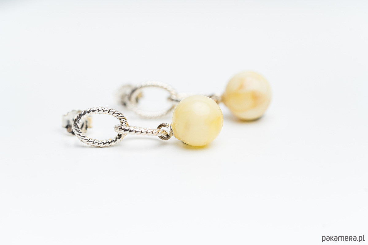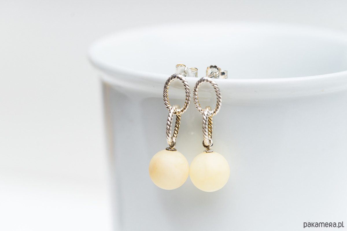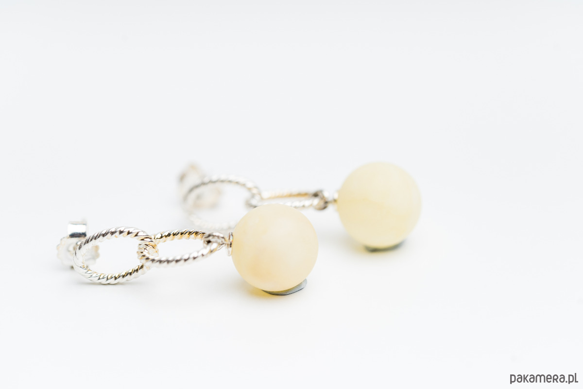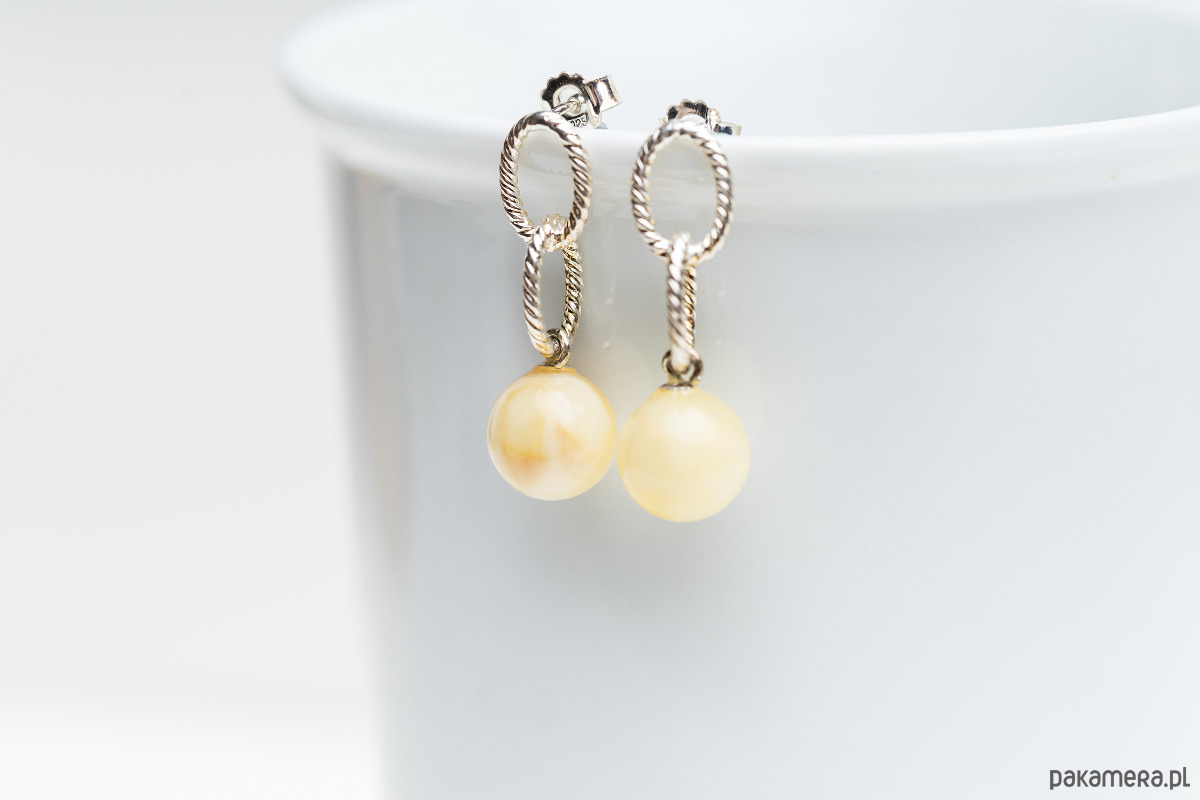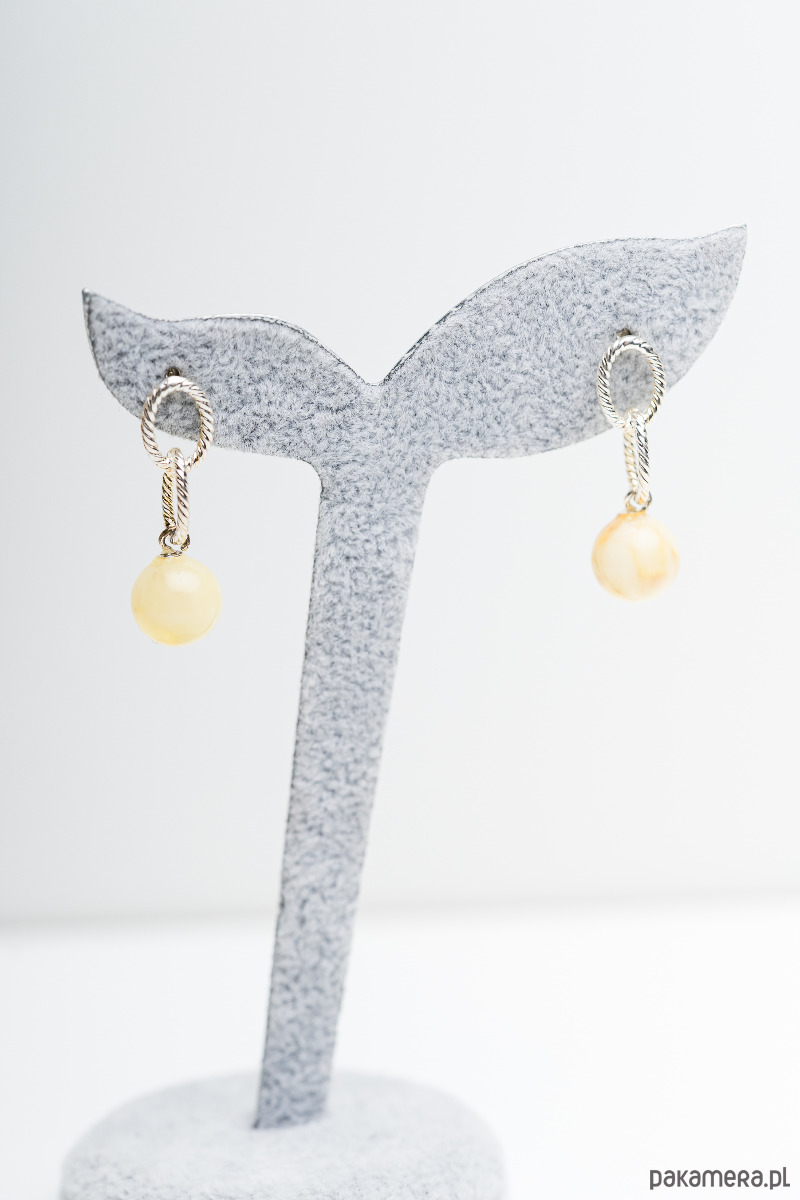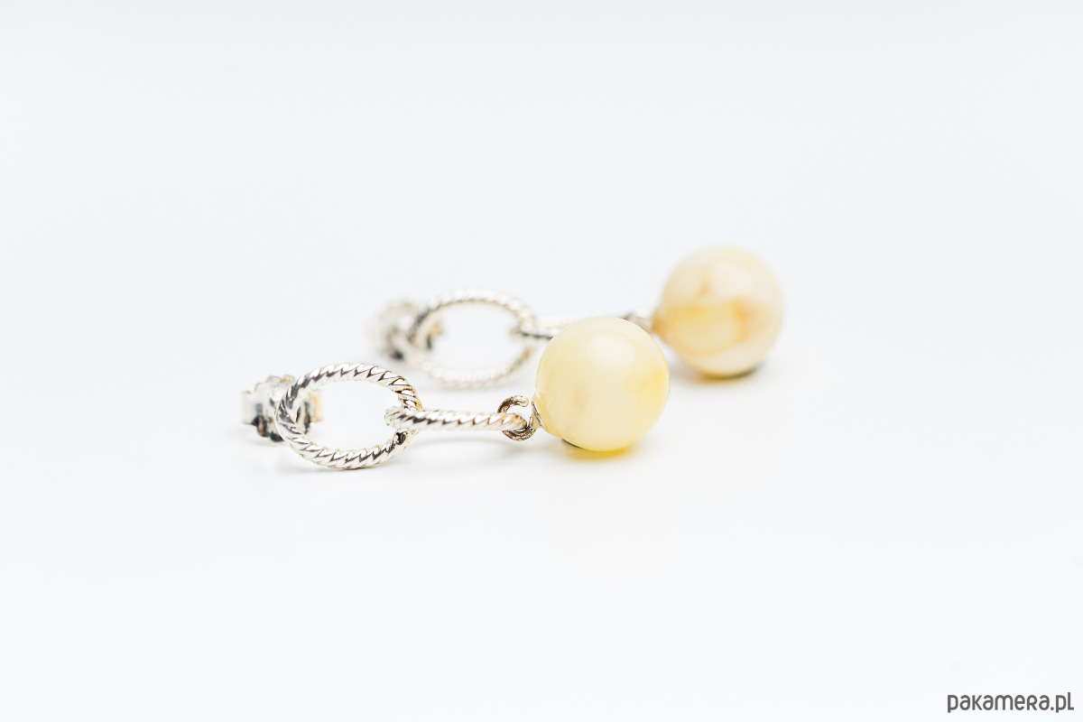 Kolczyki kule wiszące bursztyn bałtycki mleczny