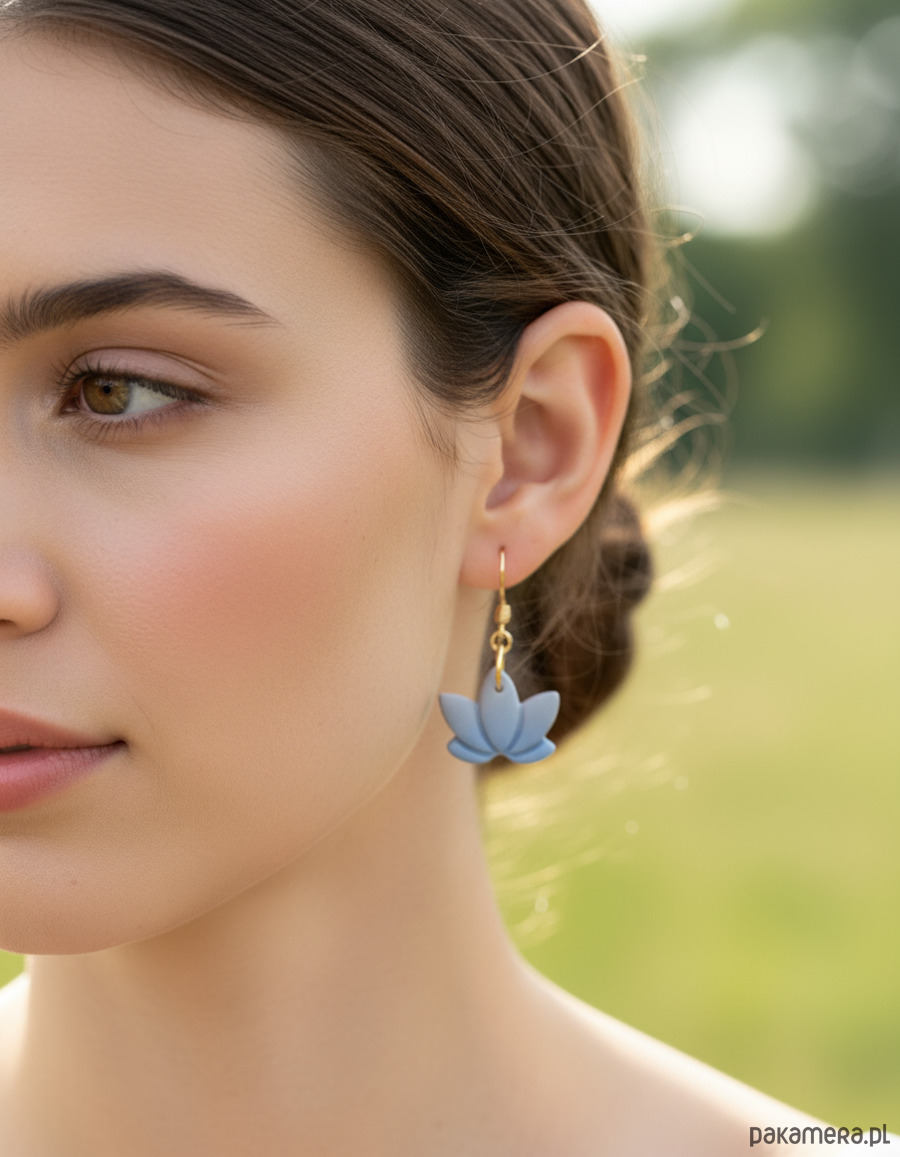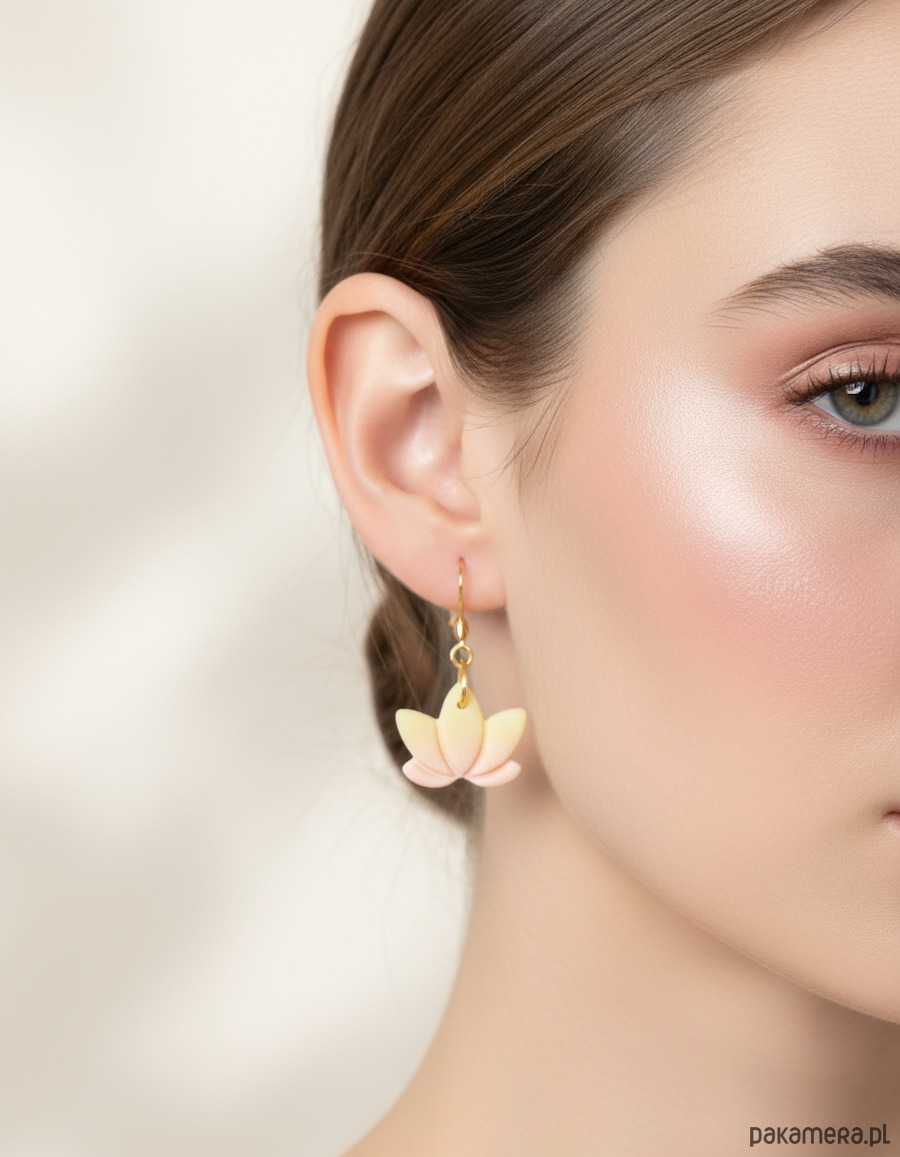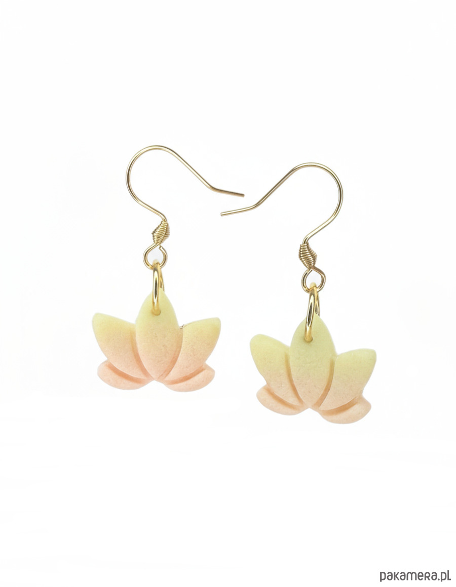 Delikatne, a jednocześnie przyciągające wzrok kolczyki w kształcie kwiatu lotosu. Wykonane z gliny polimerowej z efektem ombre w dwóch wersjach kolorystycznych.