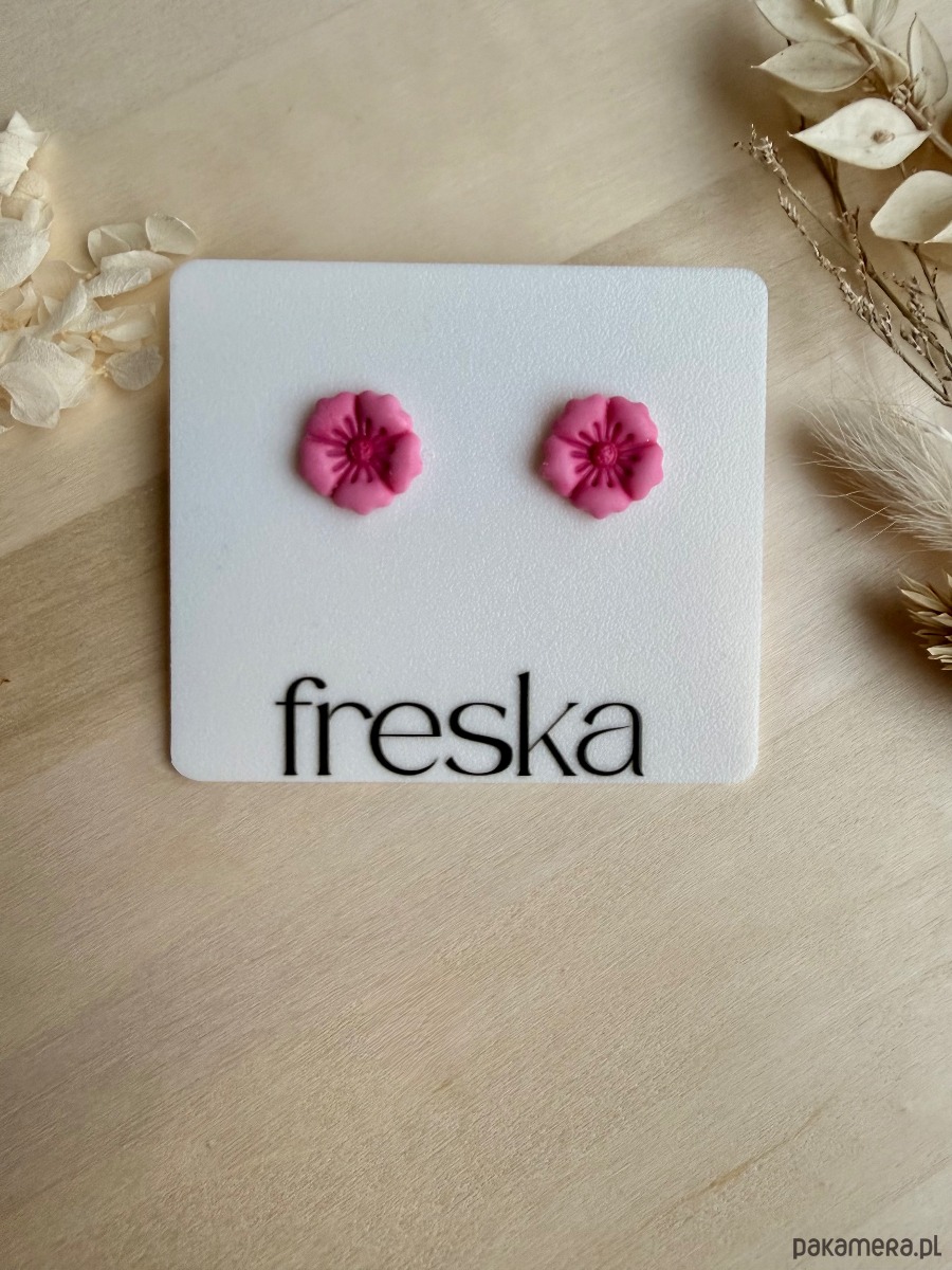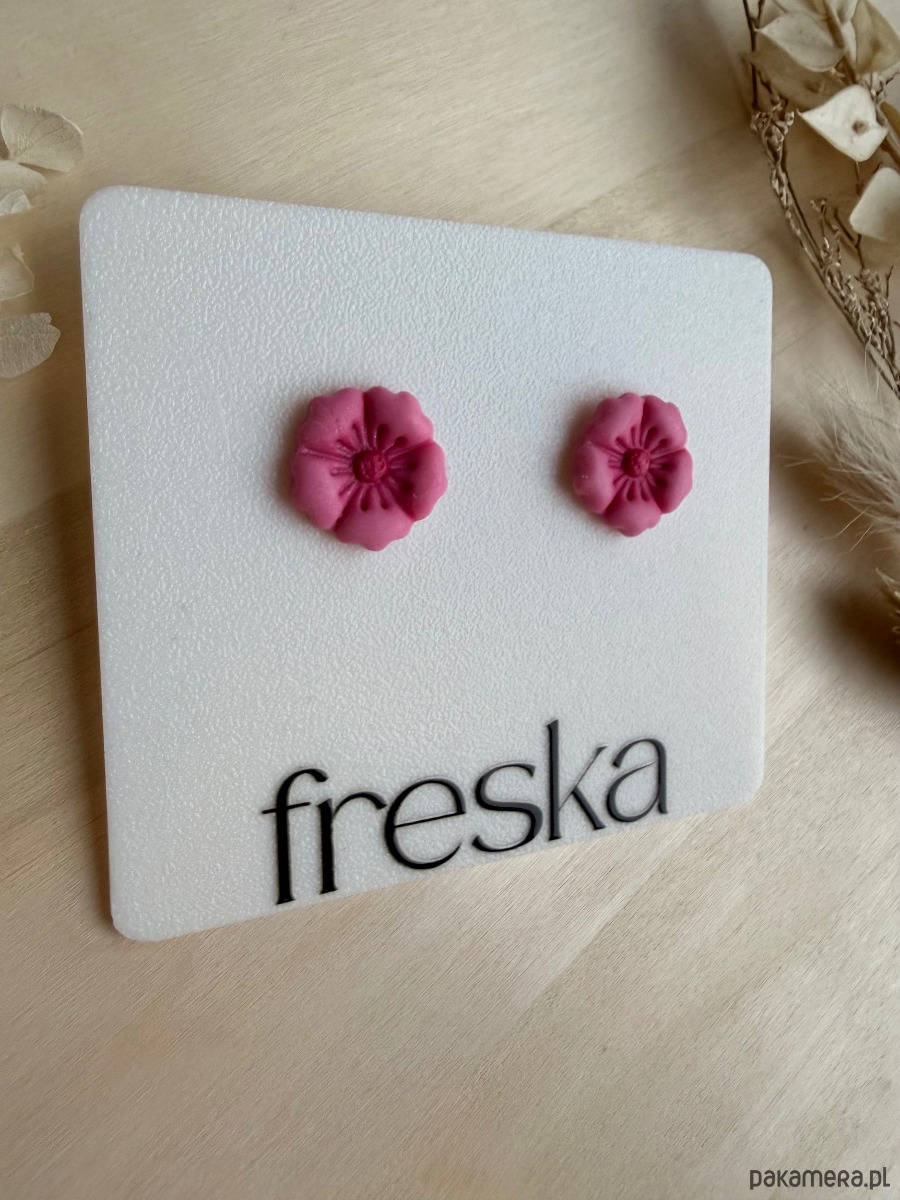 Wprowadź do swojej kolekcji biżuterii odrobinę romantycznego uroku z ręcznie wykonanymi kolczykami w kształcie drobnych kwiatów! Delikatnie rzeźbiona faktura oraz intensywny róż sprawiają, że sztyfty subtelnie ożywiają każdą stylizację – od codziennej po bardziej elegancką.