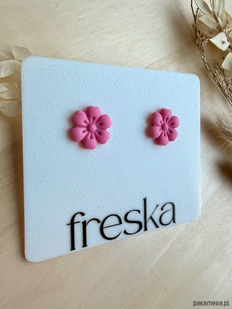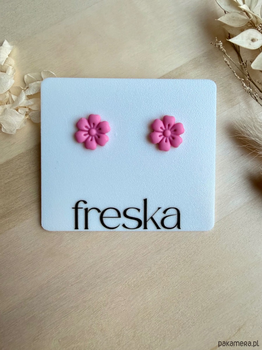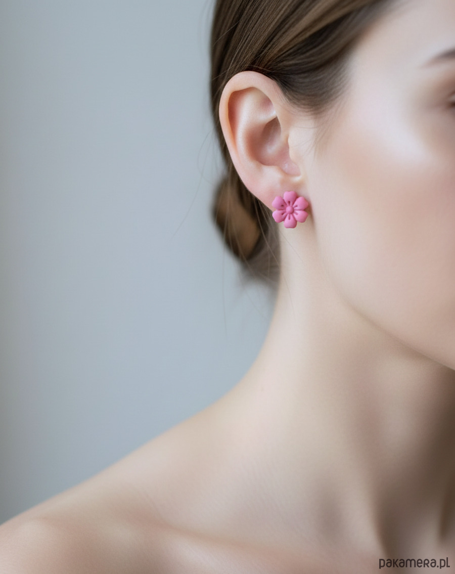 Dodaj do swojej biżuterii odrobinę dziewczęcego uroku z różowymi kolczykami-kwiatkami o klasycznym, okrągłym kształcie! Ręcznie formowane płatki tworzą efekt subtelnej, kwiatowej rozety, która pięknie prezentuje się zarówno w codziennych, jak i bardziej eleganckich stylizacjach.