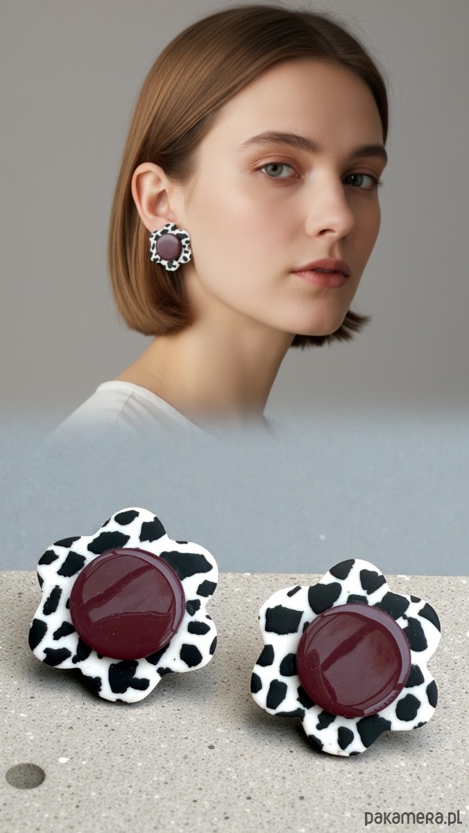 Oryginalne kolczyki wykonane ręcznie z dbałością o szczegóły z profesjonalnej glinki polimerowej, wypalane w piecu i szlifowane w domowej pracowni. Każda para kolczyków jest niepowtarzalna i wyjątkowa. Kolczyki są bardzo lekkie i wygodne, nie obciążają płatka ucha i przyciągają spojrzenia. Zapinane na sztyft ze stali chirurgicznej.