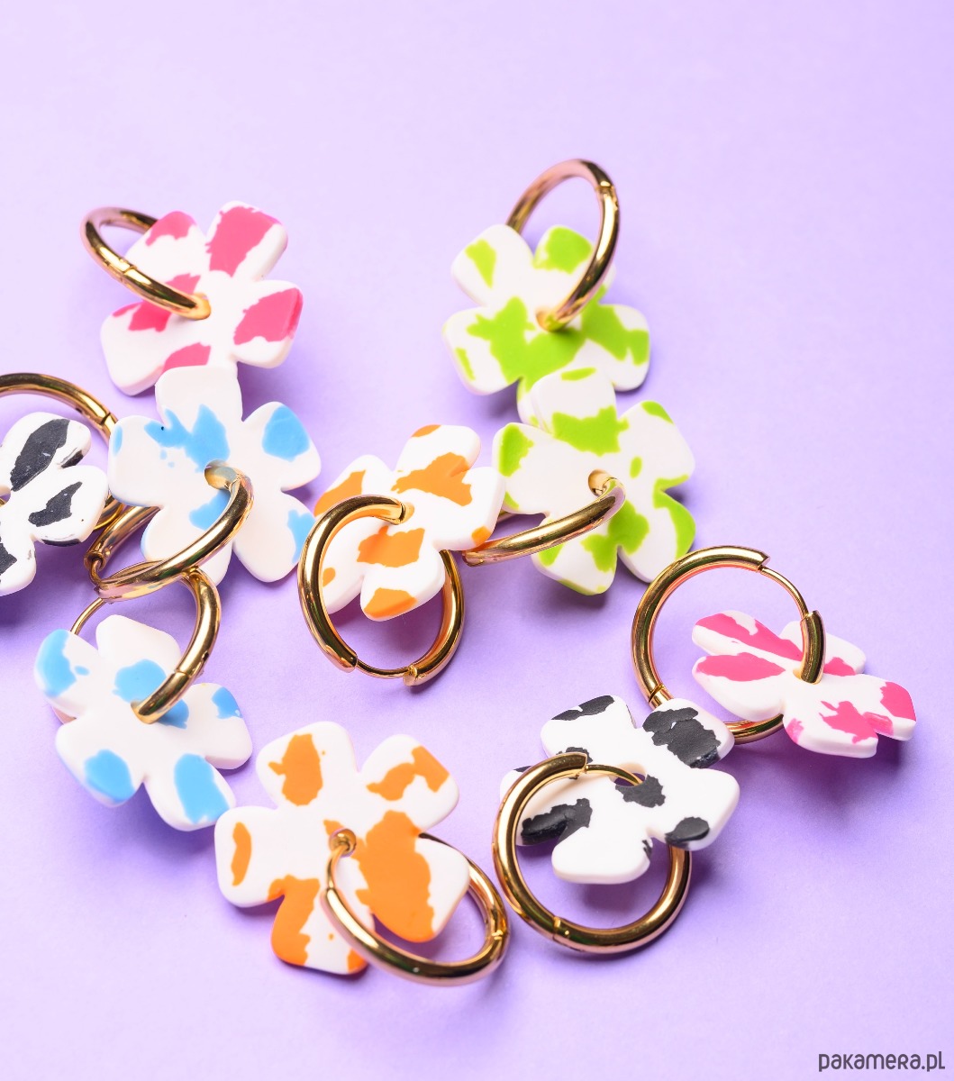 Kolczyki są bardzo lekkie i nie obciążają ucha. Idealnie sprawdzą się na wiosnę, a także jako prezent, np. dla przyjaciółki czy dziewczyny. Ponadto kolczyki posiadają wzór krowich ciapek, który na każdym kolczyku wygląda inaczej - dzięki temu nie ma dwóch takich samych par, a każda jest wyjątkowa i jedyna w swoim rodzaju.