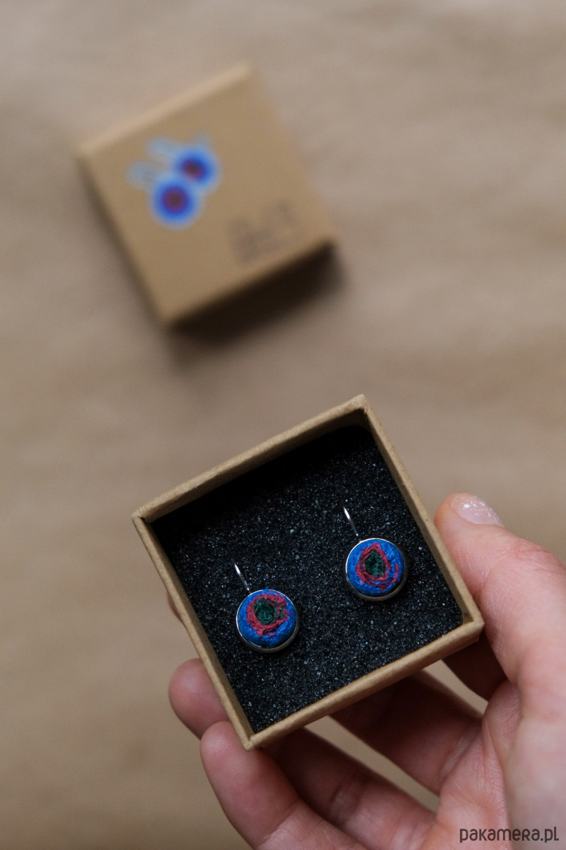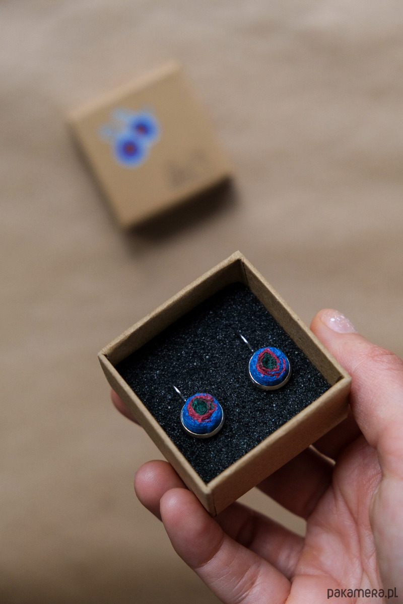 Kolczyki są zapakowane w ręcznie malowane pudełeczko kraftowe, idealne na prezent. Możesz też zamówić personalizowaną dedykację na zwoju przewiązanym jutowym sznureczkiem. Podaj mi jej treść w uwagach do zamówienia.