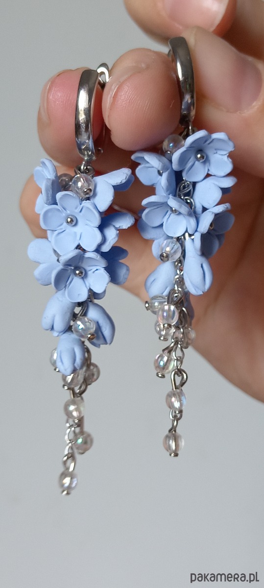 delikatne kolczyki ręcznie robione z glinki polimerowej z miniaturowymi kwiatami niezapominajki. Hipoalergiczne zapięcie zapewnia komfort i bezpieczeństwo nawet dla najbardziej wrażliwych uszu. Idealny dodatek do stworzenia romantycznego i subtelnego wyglądu!