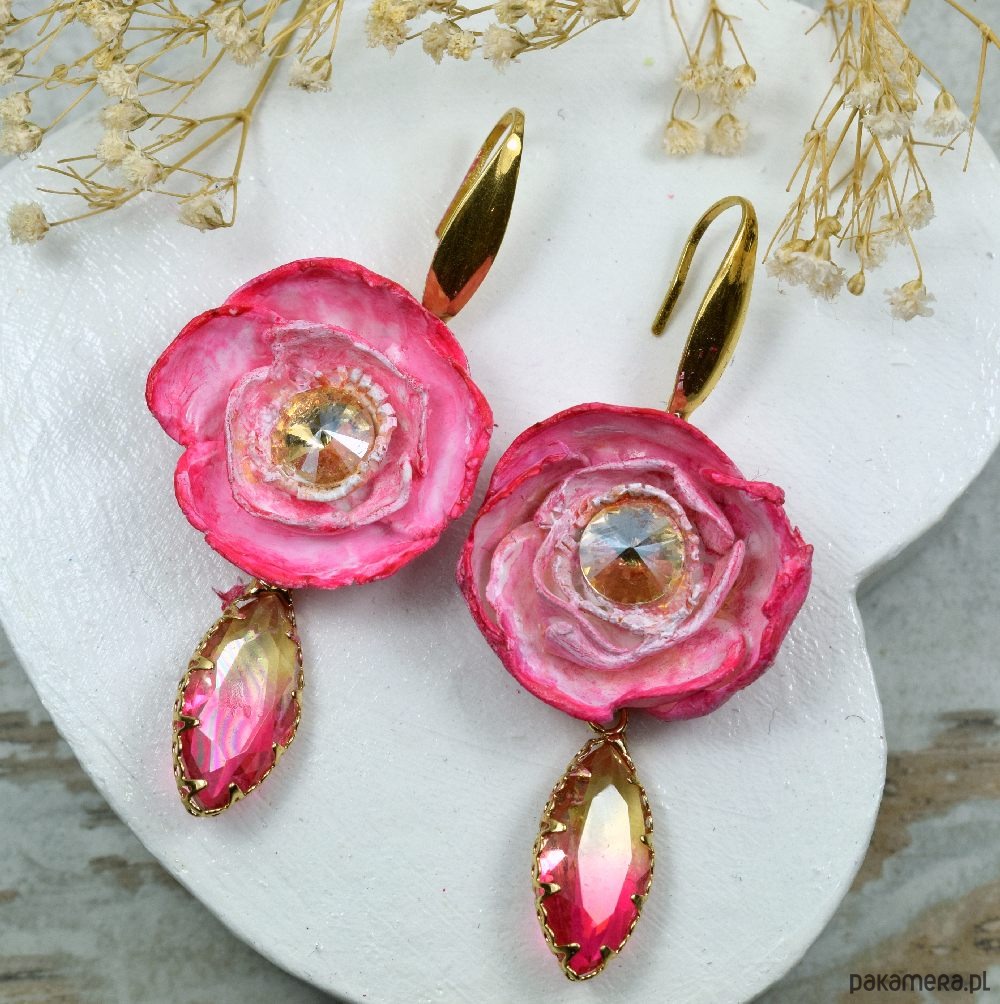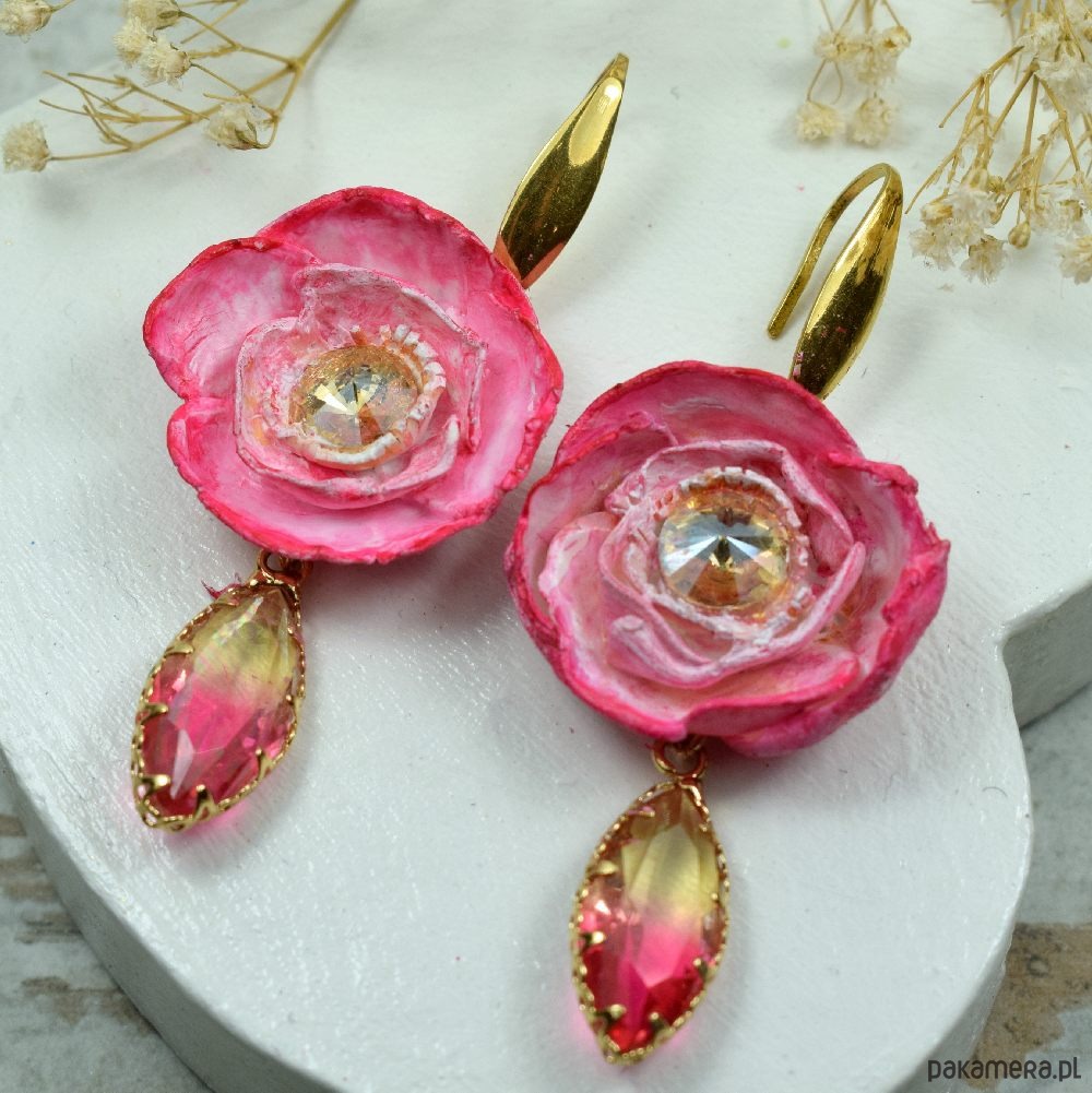 Delikatne i eleganckie kolczyki w kształcie kwiatów, ręcznie wykonane z wysokiej jakości glinki polimerowej.