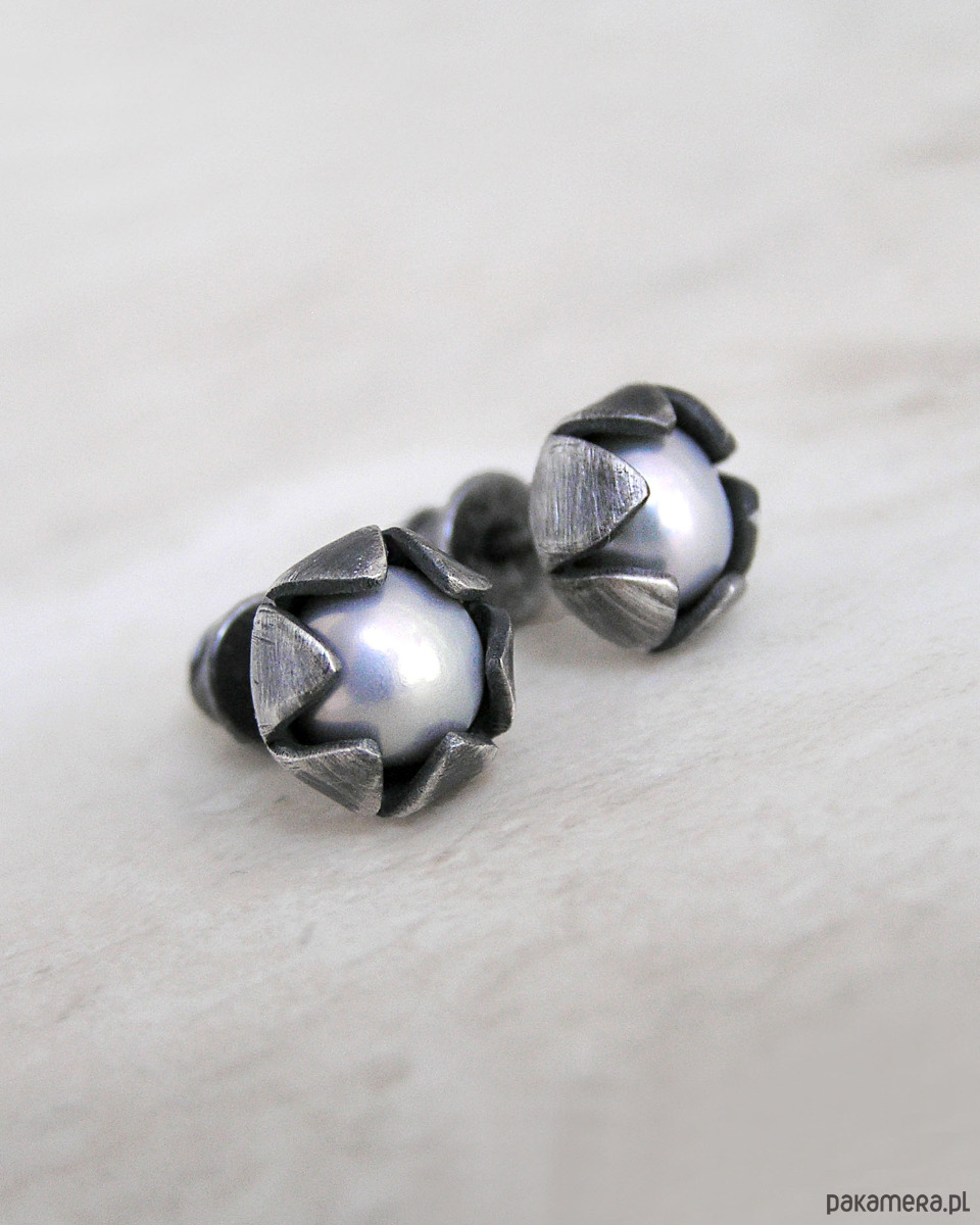 Unikatowe kolczyki wykonane ze srebra 925 ze srebrzystymi perłami.