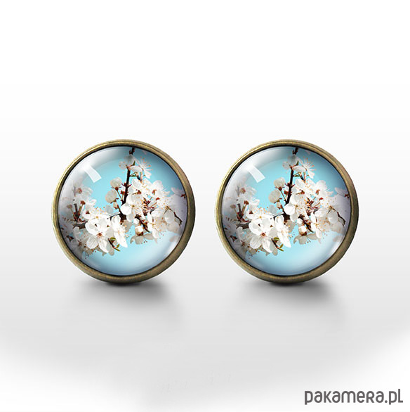 Grafika zamknięta w oryginalnych kolczykach, pod osłoną przeźroczystego półokrągłego szkiełka.