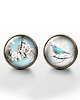 Grafika zamknięta w oryginalnych kolczykach, pod osłoną przeźroczystego półokrągłego szkiełka.