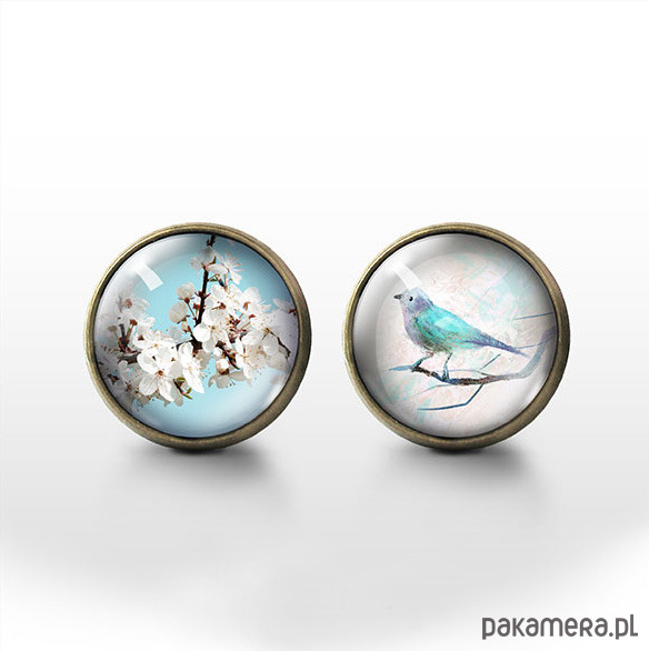 Kolczyki - Kwitnące kwiaty, ptak - brąz