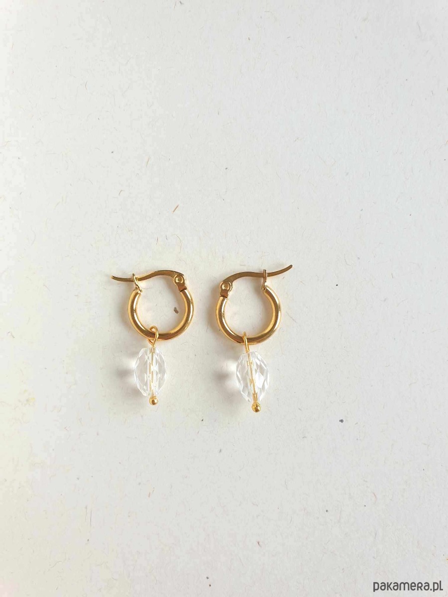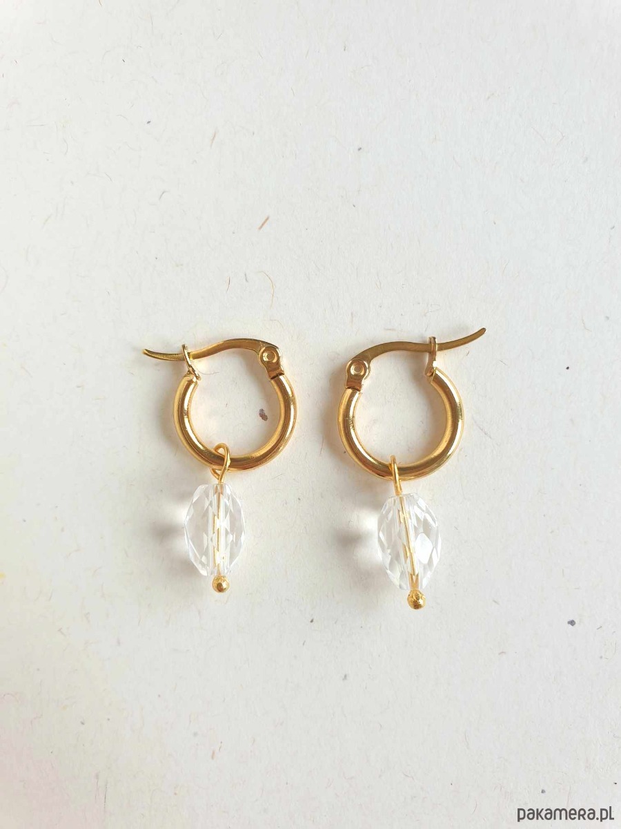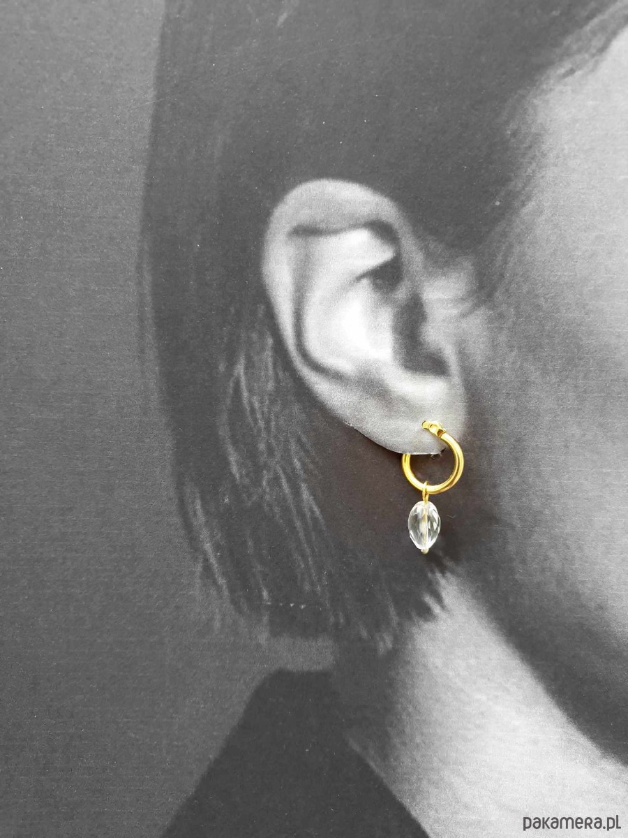 Kolczyki z kolekcji LA MER, idealne na wieczorne wyjście ale też na co dzień. Wykonane ze stali szlachetnej (hipoalergicznej) złoconej z kamieniami naturalnymi: tutaj kryształ górski fasetowany. Można je nosić same kółka bo kamyczki są zdejmowane: