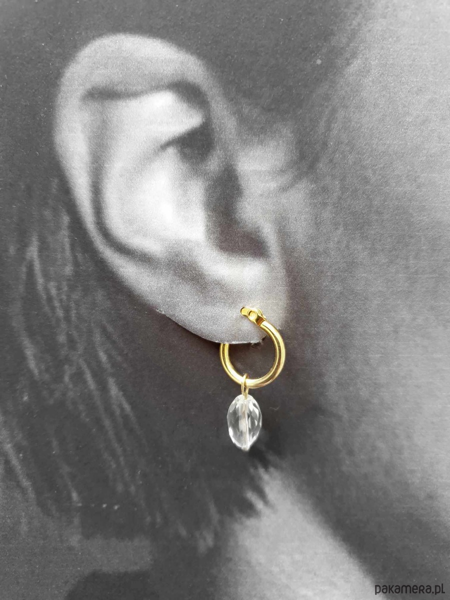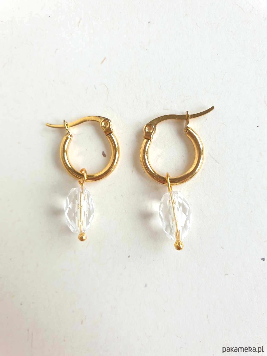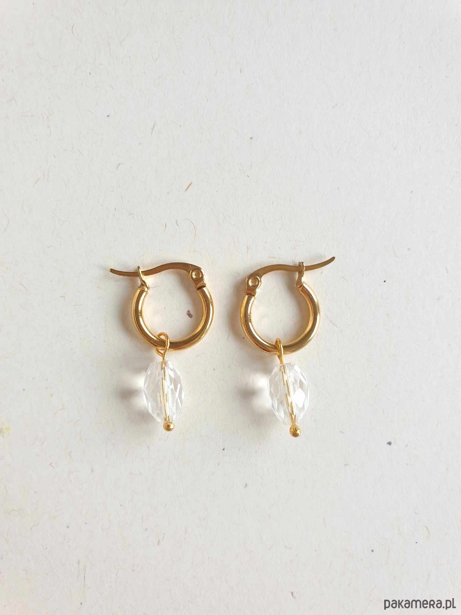 Kolczyki z kolekcji LA MER, idealne na wieczorne wyjście ale też na co dzień. Wykonane ze stali szlachetnej (hipoalergicznej) złoconej z kamieniami naturalnymi: tutaj kryształ górski fasetowany. Można je nosić same kółka bo kamyczki są zdejmowane: