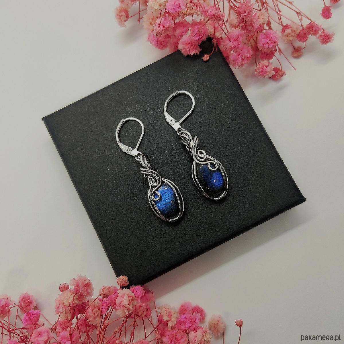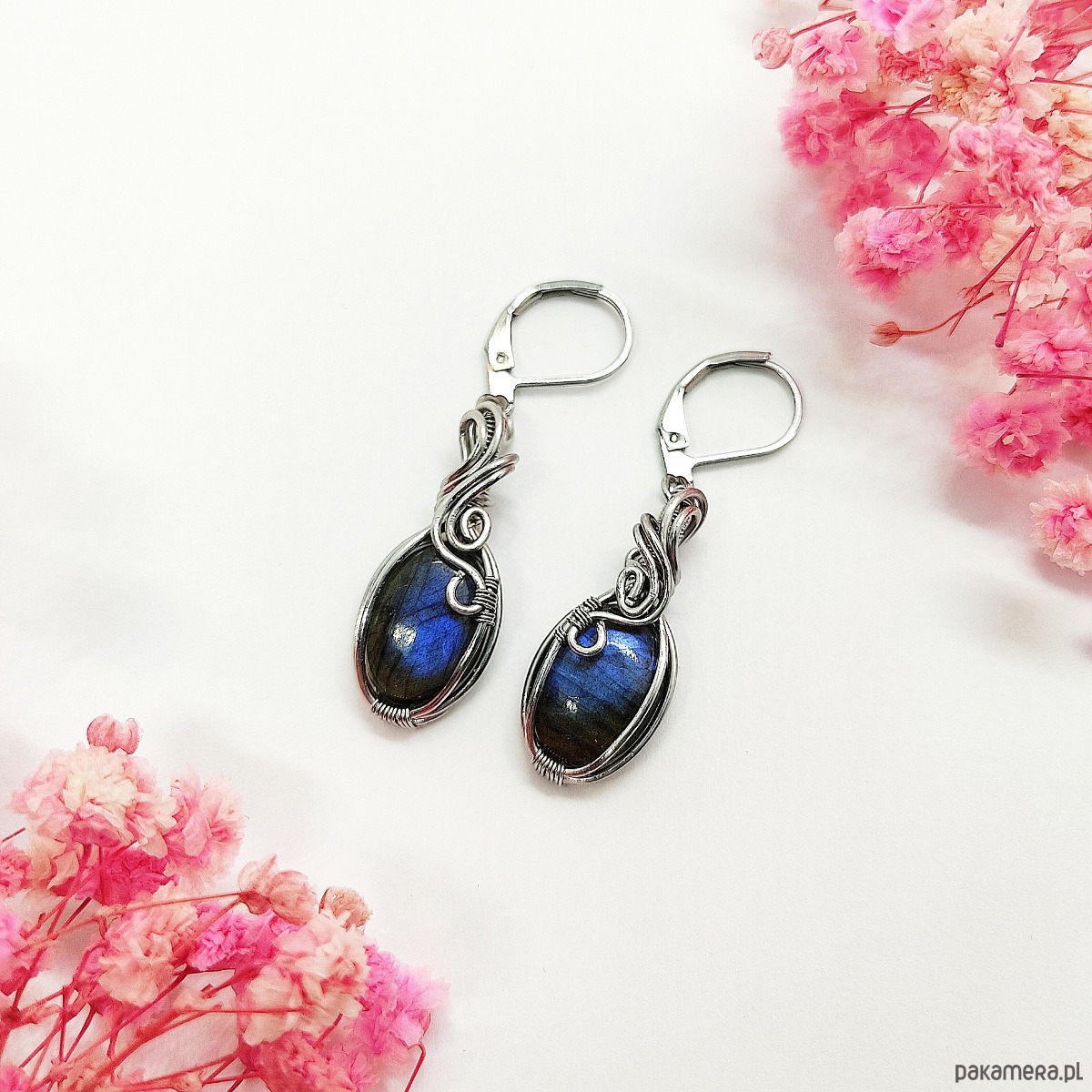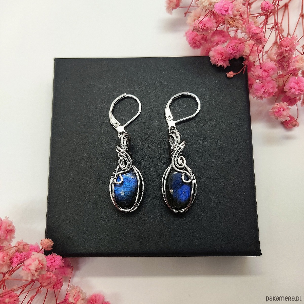Kolczyki Labradoryt stal chirurgiczna handmade wirewrapping