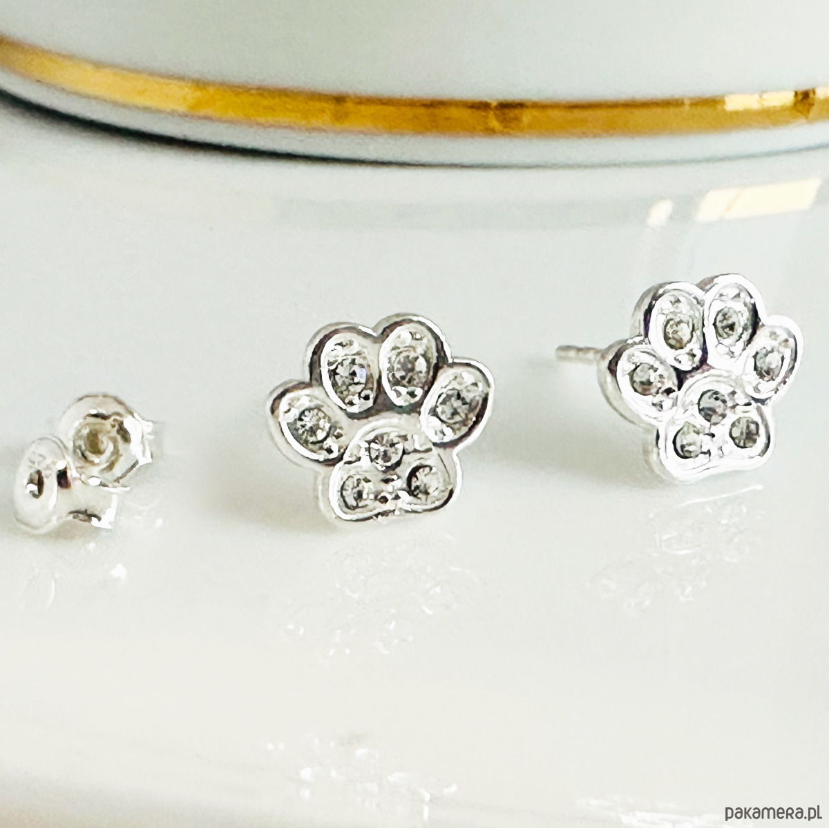 Piękne srebrne kolczyki z wyjątkowymi małymi łapkami, psia łapa, koci slad sztyfty. Kolczyki są lekkie i wygodne w noszeniu. Wykonane ze srebra próby 925 wysadzane kryształkami Preciosa.