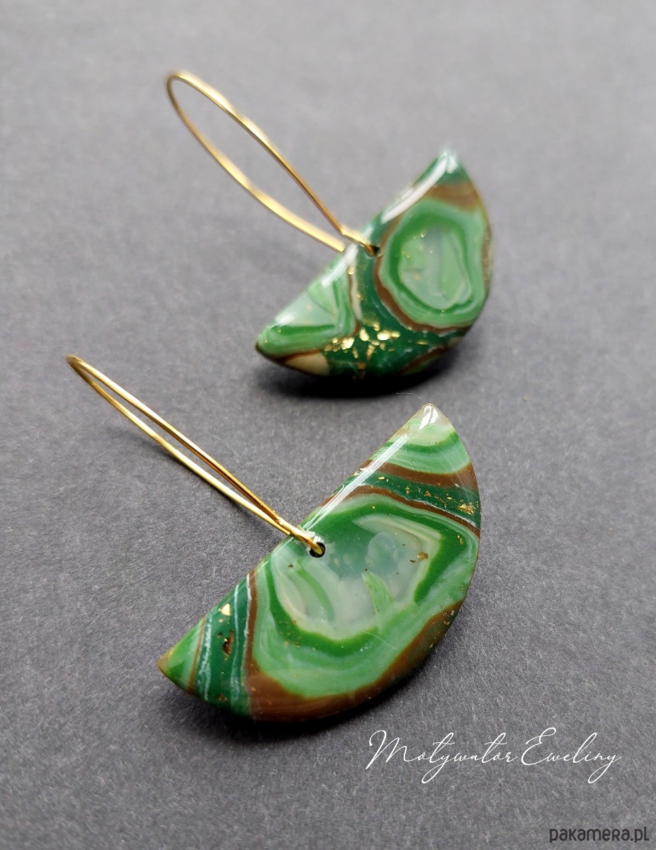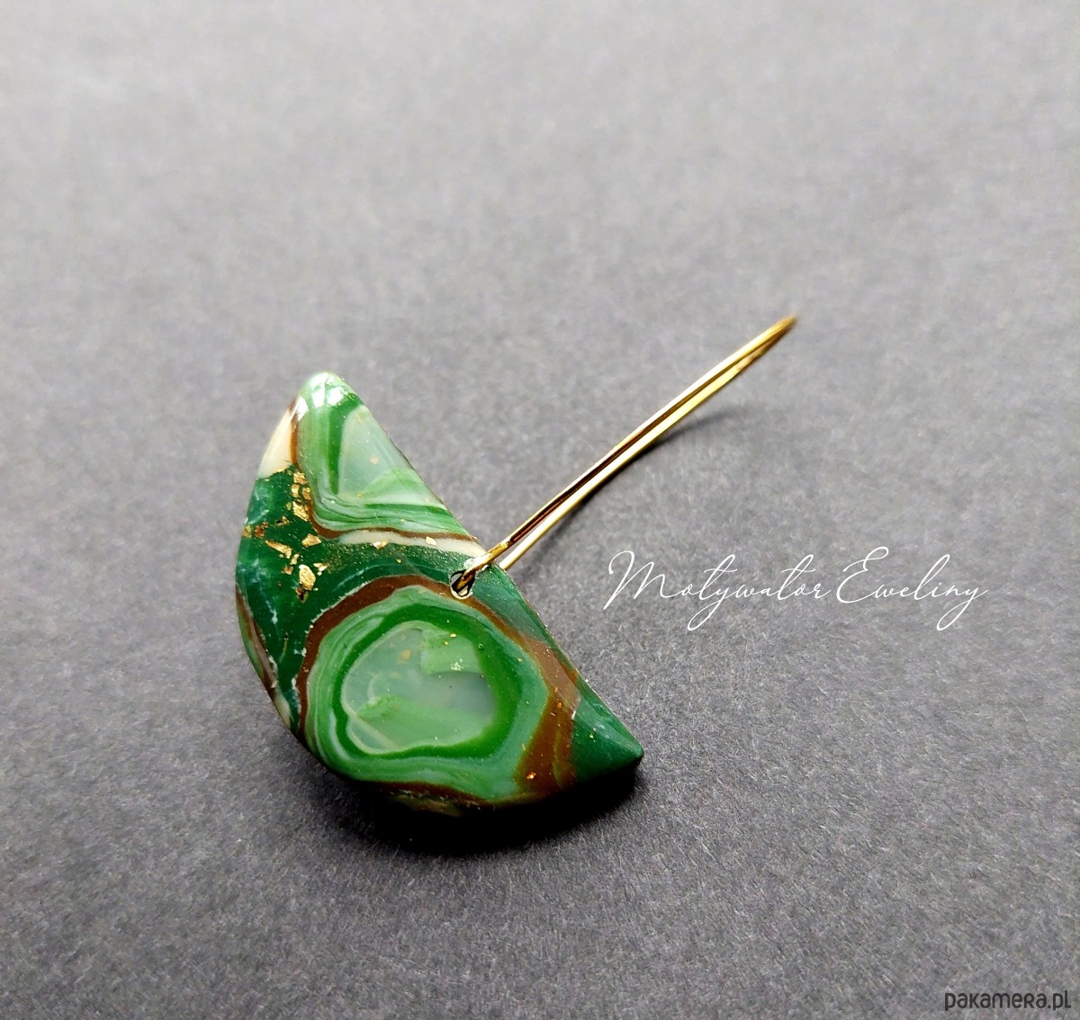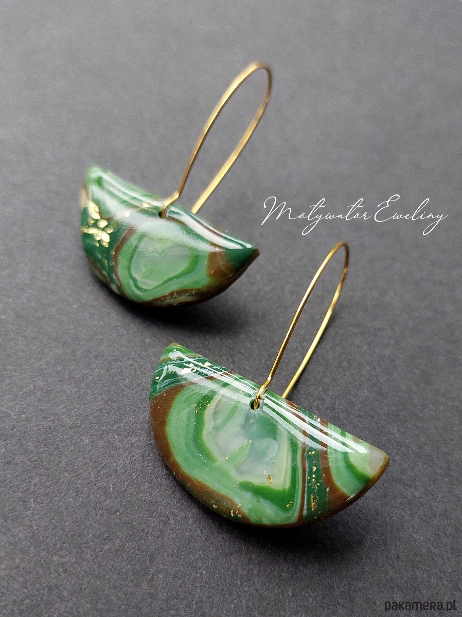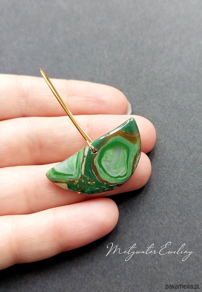 Minimalistyczne kolczyki wiszące, z wysokiej jakości glinki polimerowej. Podwieszone na prostych, nieuczulających i pozłacanych biglach.