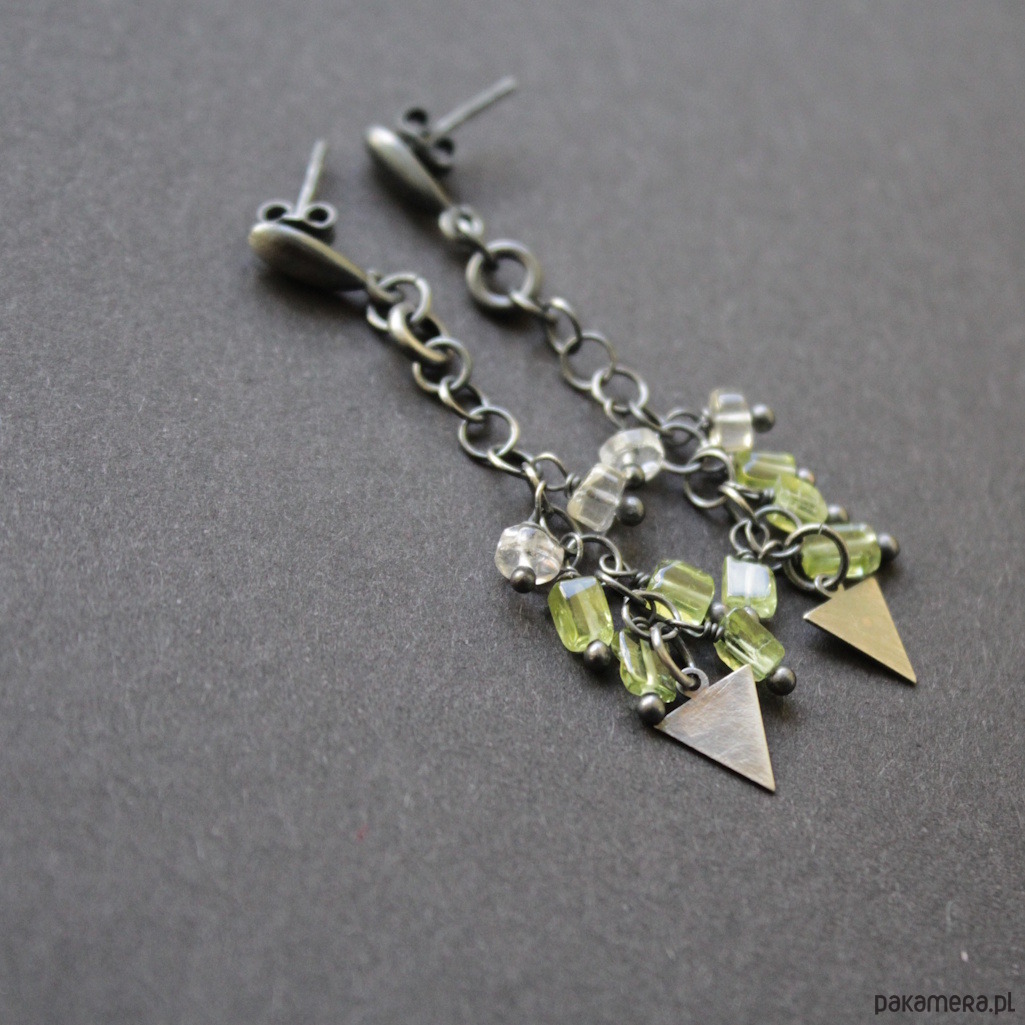 Kolczyki wykonane zostały z oksydowanego srebra próby 925 oraz delikatnych minerałów: