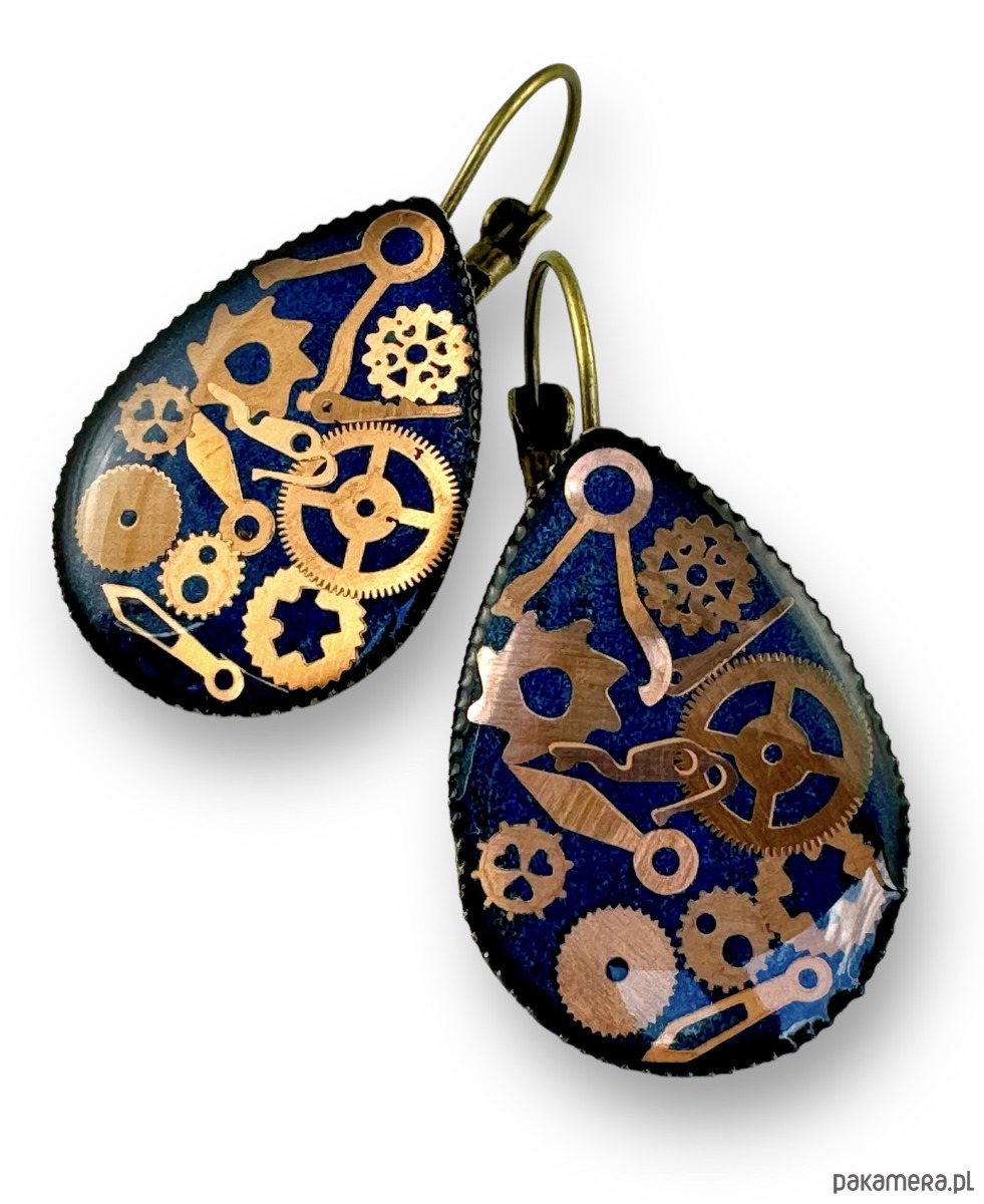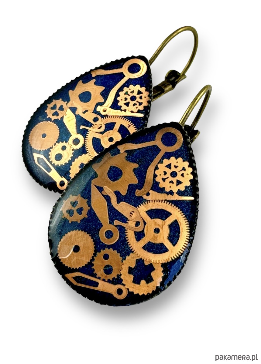Przepiękne kolczyki, wykonane ręcznie z elementów starych zegarków zatopionych w żywicy. Każda para jest unikalna i niepowtarzalna.