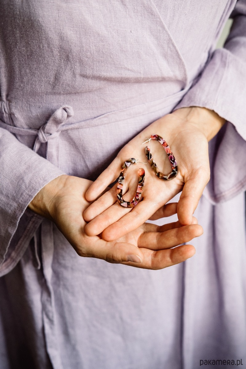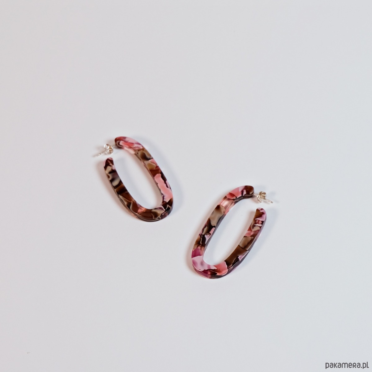 Kolczyki Liana w kolorze Raspberry są wykonane z octanu celulozy i srebrnych zapięć (925).