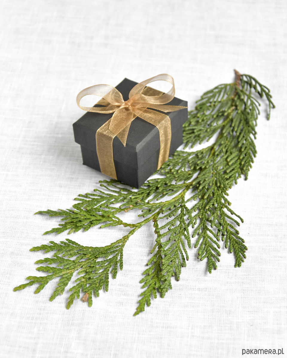 Kolczyki zapakowane w woreczek i pudełko przewiązane wstążką.