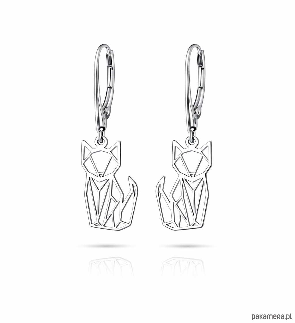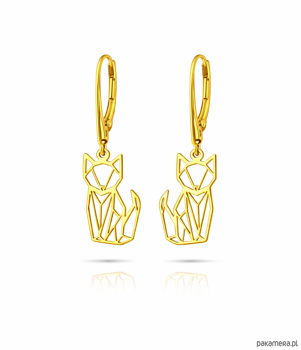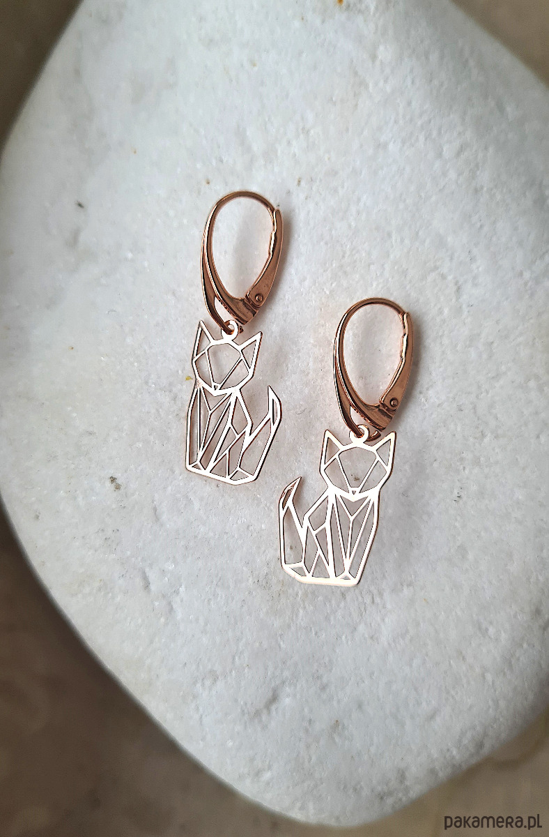Kolczyki zapinane na bigiel angielski, w kształcie geometrycznych lisków/ kotków.